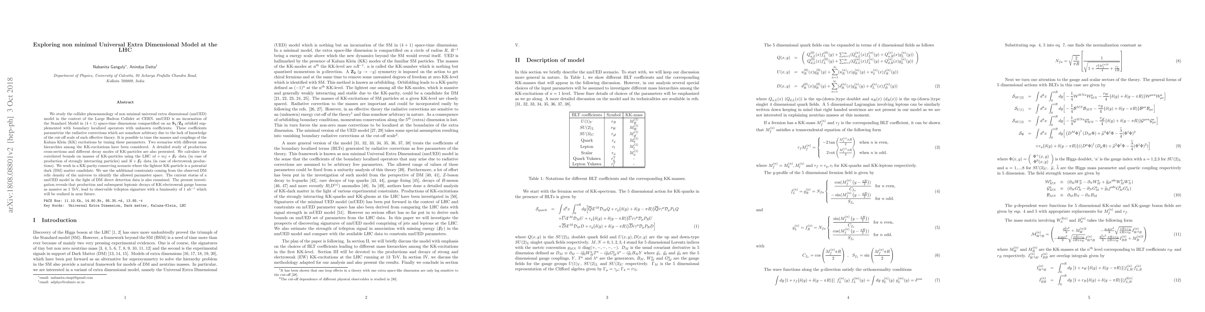 We study the collider phenomenology of non minimal universal extra dimensional (nmUED) model in the context of the Large Hadron Collider at CERN. nmUED is an incarnation of the Standard Model in $(4+1)$ space-time dimensions compactified on an $\bf{S_1}/\bf{Z_2}$ orbifold supplemented with boundary localized operators with unknown coefficients. These coefficients parametrize the radiative corrections which are somehow arbitrary due to the lack of knowledge of the cut-off scale of such effective theory. It is possible to tune the masses and couplings of the Kaluza Klein (KK) excitations by tuning these parameters. Two scenarios with different mass hierarchies among the KK-excitations have been considered. A detailed study of production cross-sections and different decay modes of KK-particles are also presented. We calculate the correlated bounds on masses of KK-particles using the LHC $nl + mj + E\!\!\!\!/_T$ data (in case of production of strongly interacting particles) and $3l + E\!\!\!\!/_T$ data (in case of electroweak productions). We work in a KK-parity conserving scenario where the lightest KK-particle is a potential dark (DM) matter candidate. We use the additional constraints coming from the observed DM relic density of the universe to identify the allowed parameter space. The current status of a nmUED model in the light of DM direct detection data is also examined. The present investigation reveals that production and subsequent leptonic decays of KK-electroweak gauge bosons as massive as 1 TeV, lead to observable trilepton signature with a luminosity of 1 ab$^{-1}$ which will be realized in near future.