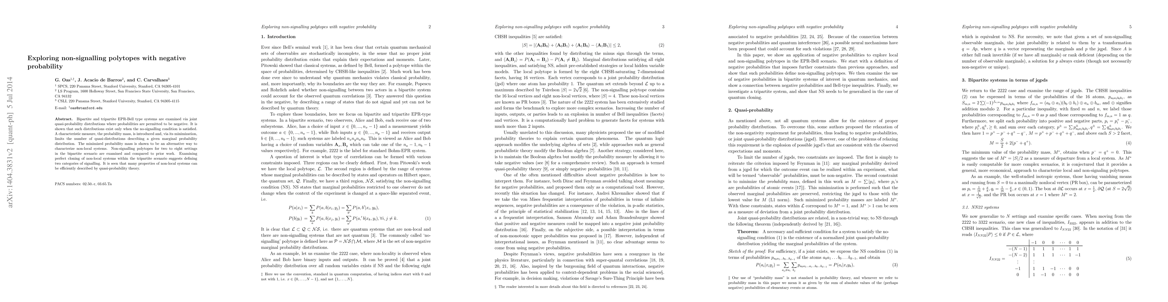 The research explores non-signalling polytopes using joint quasi-probability distributions (jqpd) that allow for negative probabilities, examining bipartite and tripartite EPR-Bell systems. It introduces a probability mass measure, M*, to limit the number of jqpd describing a given marginal probability distribution and characterize non-local systems.