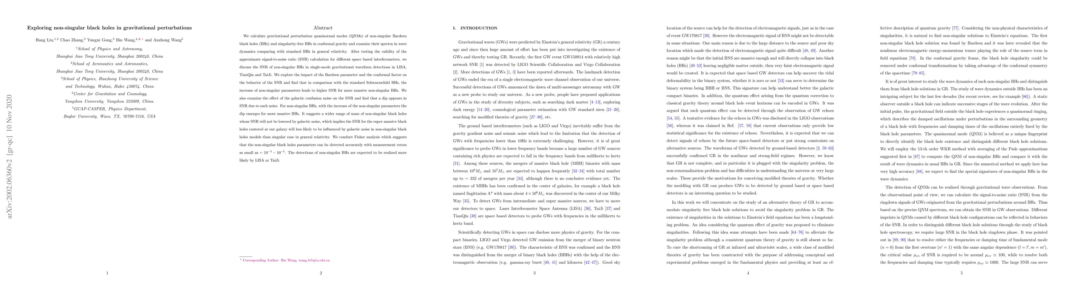 This paper investigates gravitational perturbations and quasinormal modes of non-singular black holes, comparing their signal-to-noise ratios (SNR) with those of standard black holes in general relativity. It finds that non-singular black holes exhibit higher SNR for more massive ones, suggesting reduced influence of galactic noise, and predicts accurate detection of their parameters with current space-based interferometers like LISA and TaiJi.
