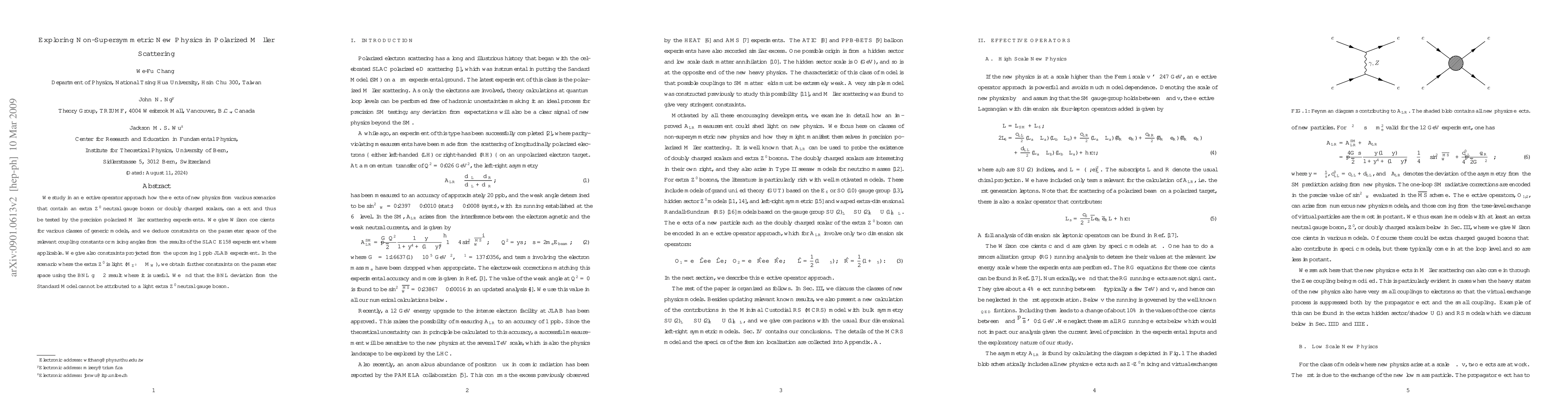 This paper explores non-supersymmetric new physics in polarized Møller scattering through an effective operator approach, focusing on extra $Z'$ gauge bosons and doubly charged scalars. It provides constraints on model parameters from the SLAC E158 and upcoming JLAB experiments, and finds no evidence that the BNL $g-2$ deviation is due to a light extra $Z'$ boson.
