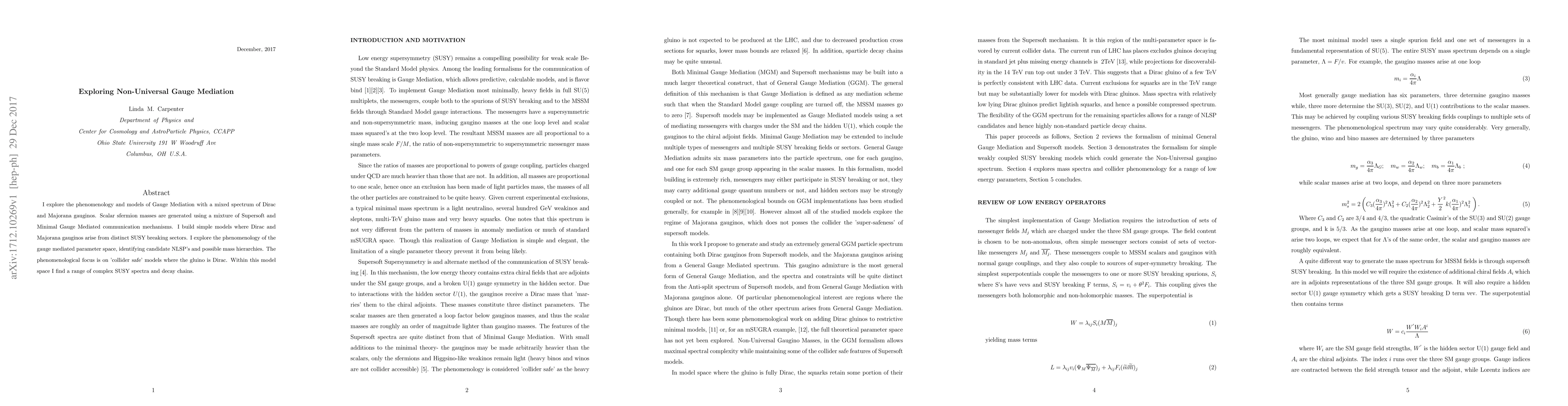 I explore the phenomenology and models of Gauge Mediation with a mixed spectrum of Dirac and Majorana gauginos. Scalar sfermion masses are generated using a mixture of Supersoft and Minimal Gauge Mediated communication mechanisms. I build simple models where Dirac and Majorana gauginos arise from distinct SUSY breaking sectors. I explore the phenomenology of the gauge mediated parameter space, identifying candidate NLSP's and possible mass hierarchies. The phenomenological focus is on 'collider safe' models where the gluino is Dirac. Within this model space I find a range of complex SUSY spectra and decay chains.