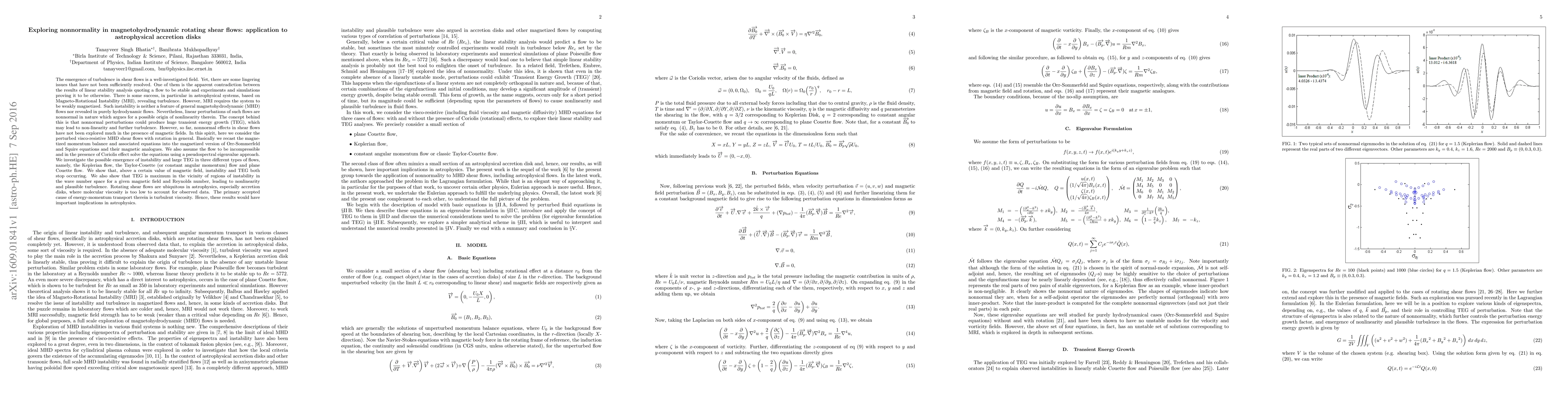 This paper explores nonnormal perturbations in magnetohydrodynamic rotating shear flows, particularly in astrophysical accretion disks, revealing that above a certain magnetic field strength, instability and transient energy growth cease. The study uses pseudospectral methods to analyze the perturbed visco-resistive incompressible MHD equations, showing significant implications for understanding turbulence in accretion disks.