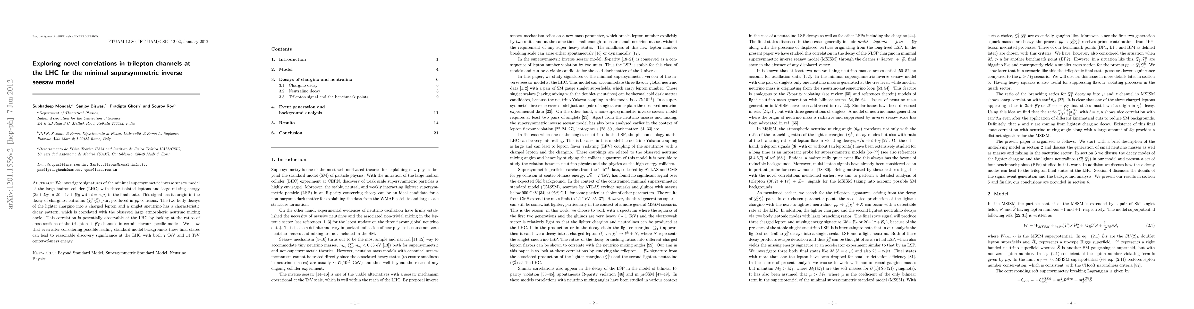 This paper explores the minimal supersymmetric inverse seesaw model's signatures at the LHC through trilepton channels with large missing energy, focusing on chargino-neutralino decay patterns. It demonstrates potential discovery significance in specific trilepton + \mET channels despite standard model backgrounds.