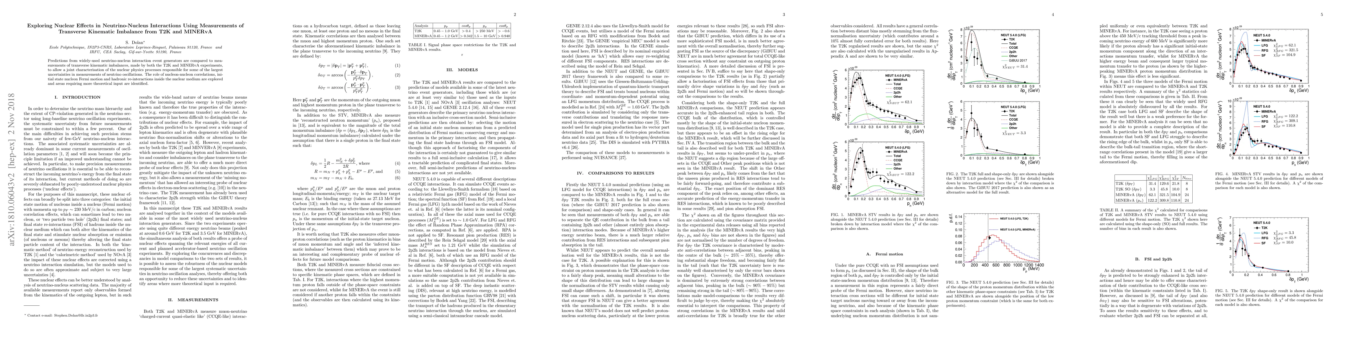 This paper compares T2K and MINERvA experimental data on transverse kinematic imbalances to assess nuclear effects in neutrino-nucleus interactions. It identifies uncertainties due to nucleon-nucleon correlations, Fermi motion, and hadronic re-interactions, highlighting areas needing further theoretical development.