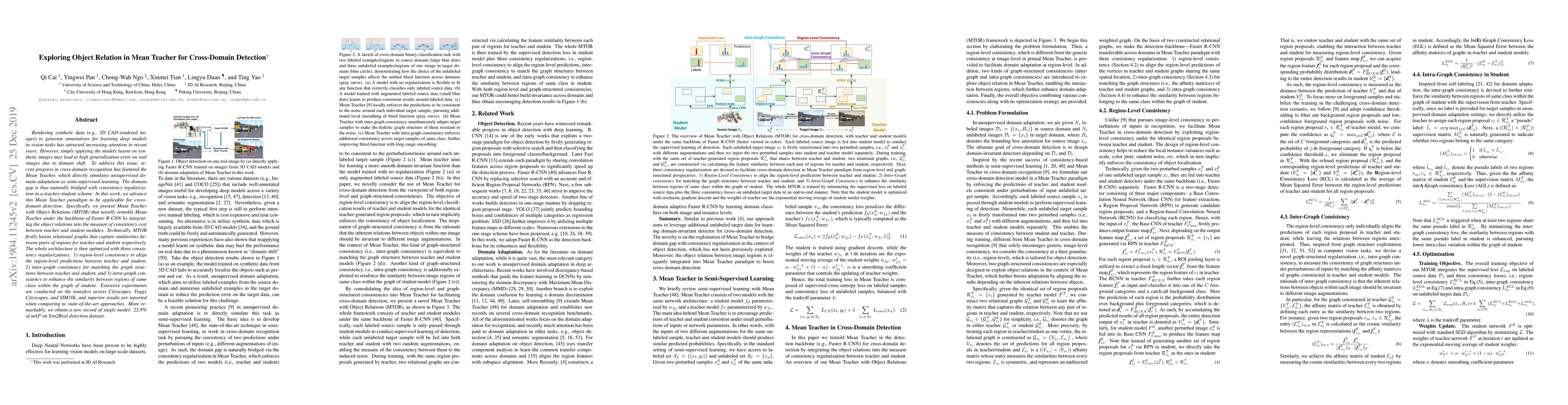 This paper proposes Mean Teacher with Object Relations (MTOR) to enhance cross-domain object detection using synthetic data. MTOR integrates object relations into the consistency regularization of a teacher-student framework, achieving superior performance on datasets with domain shifts.