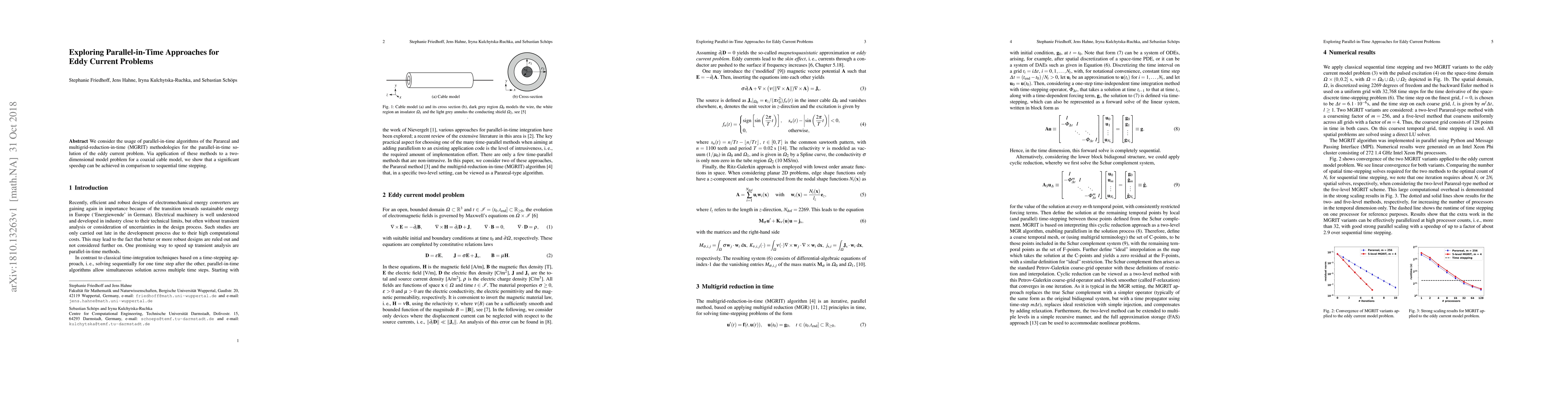 The paper presents the application of Parareal and MGRIT methods to an eddy current problem, demonstrating their effectiveness in achieving speedup compared to sequential time stepping.