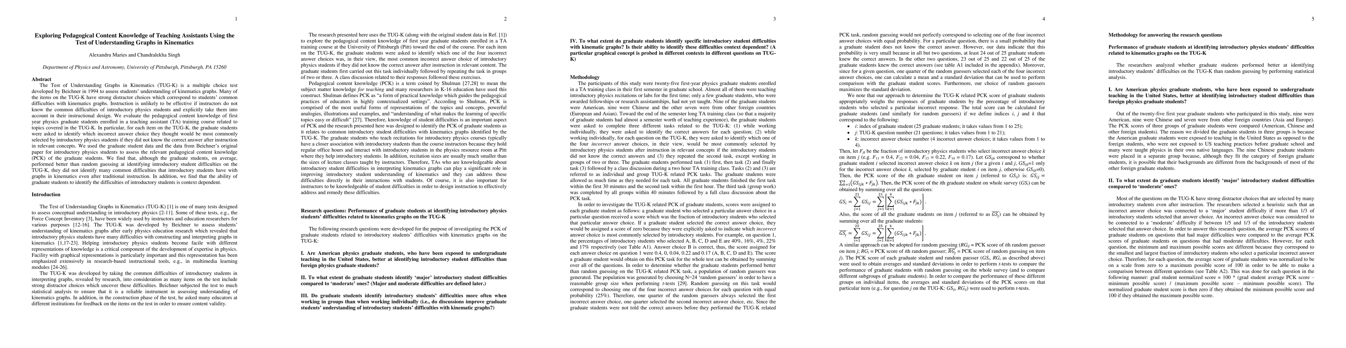 This study evaluates the pedagogical content knowledge of first-year physics graduate teaching assistants using the Test of Understanding Graphs in Kinematics (TUG-K). Although the graduate students performed better than random in identifying common student difficulties, they often failed to recognize many typical introductory physics student misconceptions, indicating a gap in their pedagogical content knowledge despite traditional instruction.
