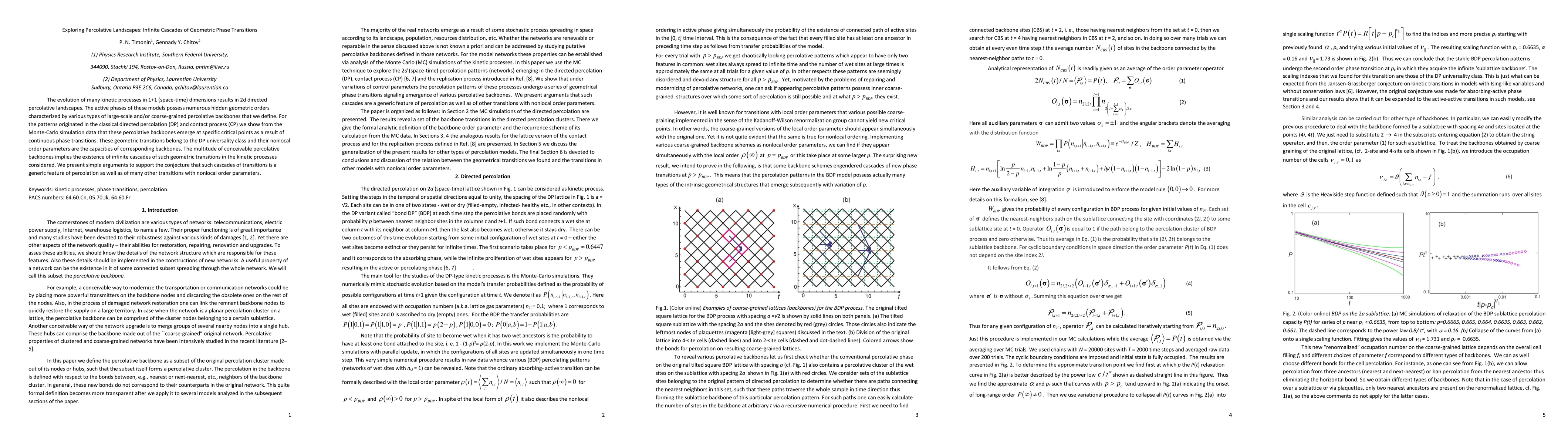 This paper investigates 2D directed percolative landscapes arising from kinetic processes, revealing hidden geometric orders and percolative backbones emerging at critical points. The study suggests infinite cascades of geometric phase transitions, a generic feature of percolation and similar transitions.