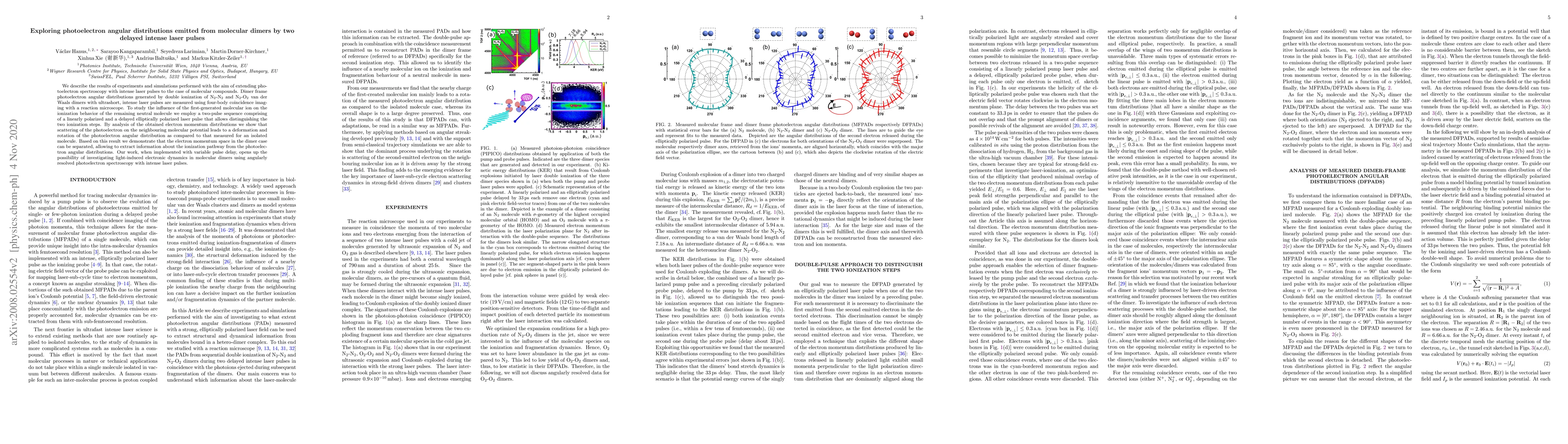 We describe the results of experiments and simulations performed with the aim of extending photoelectron spectroscopy with intense laser pulses to the case of molecular compounds. Dimer frame photoelectron angular distributions generated by double ionization of N$_2$-N$_2$ and N$_2$-O$_2$ van der Waals dimers with ultrashort, intense laser pulses are measured using four-body coincidence imaging with a reaction microscope. To study the influence of the first-generated molecular ion on the ionization behavior of the remaining neutral molecule we employ a two-pulse sequence comprising of a linearly polarized and a delayed elliptically polarized laser pulse that allows distinguishing the two ionization steps. By analysis of the obtained electron momentum distributions we show that scattering of the photoelectron on the neighbouring molecular potential leads to a deformation and rotation of the photoelectron angular distribution as compared to that measured for an isolated molecule. Based on this result we demonstrate that the electron momentum space in the dimer case can be separated, allowing to extract information about the ionization pathway from the photoelectron angular distributions. Our work, when implemented with variable pulse delay, opens up the possibility of investigating light-induced electronic dynamics in molecular dimers using angularly resolved photoelectron spectroscopy with intense laser pulses.
