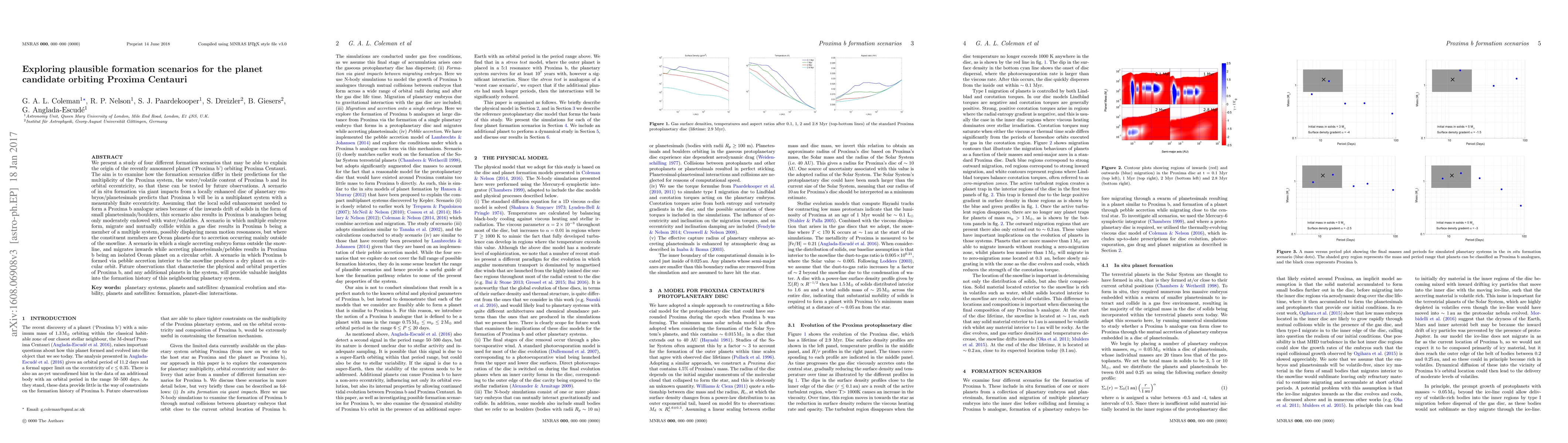 We present a study of four different formation scenarios that may be able to explain the origin of the recently announced planet (`Proxima b') orbiting Proxima Centauri. The aim is to examine how the formation scenarios differ in their predictions for the multiplicity of the Proxima system, the water/volatile content of Proxima b and its orbital eccentricity, so that these can be tested by future observations. A scenario of in situ formation via giant impacts from a locally enhanced disc of planetary embryos/planetesimals predicts that Proxima b will be in a multiplanet system with a measurably finite eccentricity. Assuming that the local solid enhancement needed to form a Proxima b analogue arises because of the inwards drift of solids in the form of small planetesimals/boulders, this scenario also results in Proxima b analogues being only moderately endowed with water/volatiles. A scenario in which multiple embryos form, migrate and mutually collide within a gas disc results in Proxima b being a member of a multiple system, possibly displaying mean motion resonances, but where the constituent members are Ocean planets due to accretion occurring mainly outside of the snowline. A scenario in which a single accreting embryo forms outside the snowline, and migrates inwards while accreting planetesimals/pebbles results in Proxima b being an isolated Ocean planet on a circular orbit. A scenario in which Proxima b formed via pebble accretion interior to the snowline produces a dry planet on a circular orbit. Future observations that characterise the physical and orbital properties of Proxima b, and any additional planets in the system, will provide valuable insights into the formation history of this neighbouring planetary system.