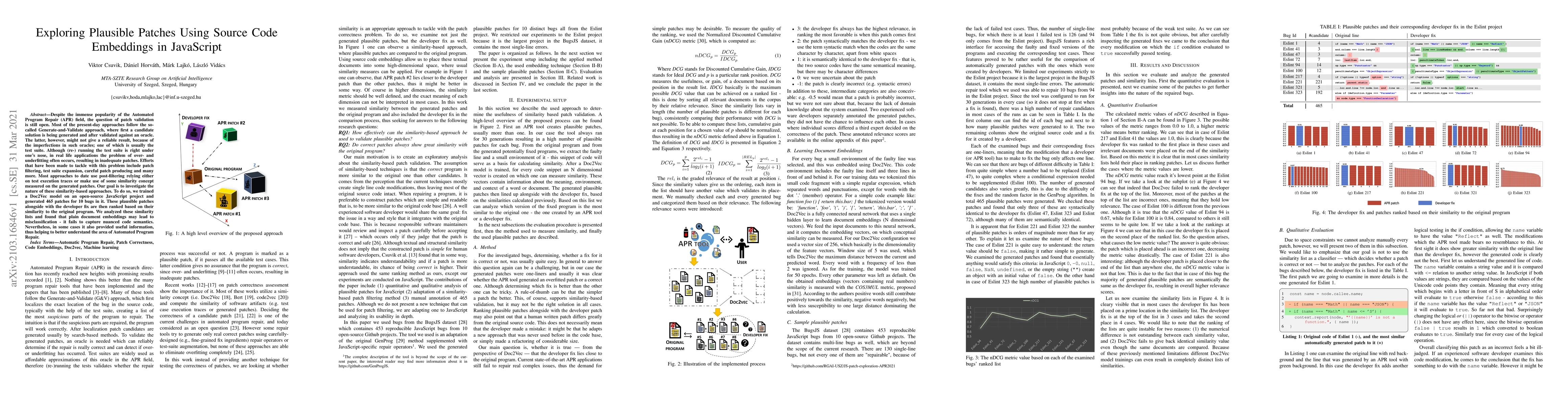 This research explores the use of source code embeddings, specifically Doc2Vec, to generate plausible patches for JavaScript bugs. Trained on an open-source JavaScript project, it generated 465 patches for 10 bugs. The study found that while plain document embeddings may misclassify nuanced code semantics, they can still offer useful insights into the Automated Program Repair process.