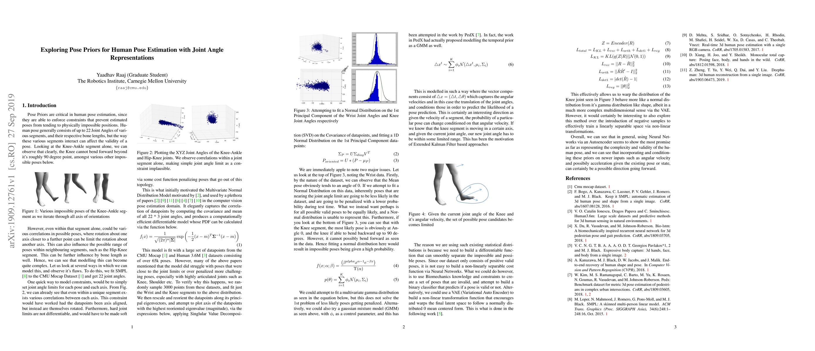 This paper investigates the use of Pose Priors to improve human pose estimation by enforcing constraints that prevent physically impossible poses, focusing on joint angle representations and the interactions between segments like the Knee-Ankle. It highlights the importance of these constraints to maintain pose validity.
