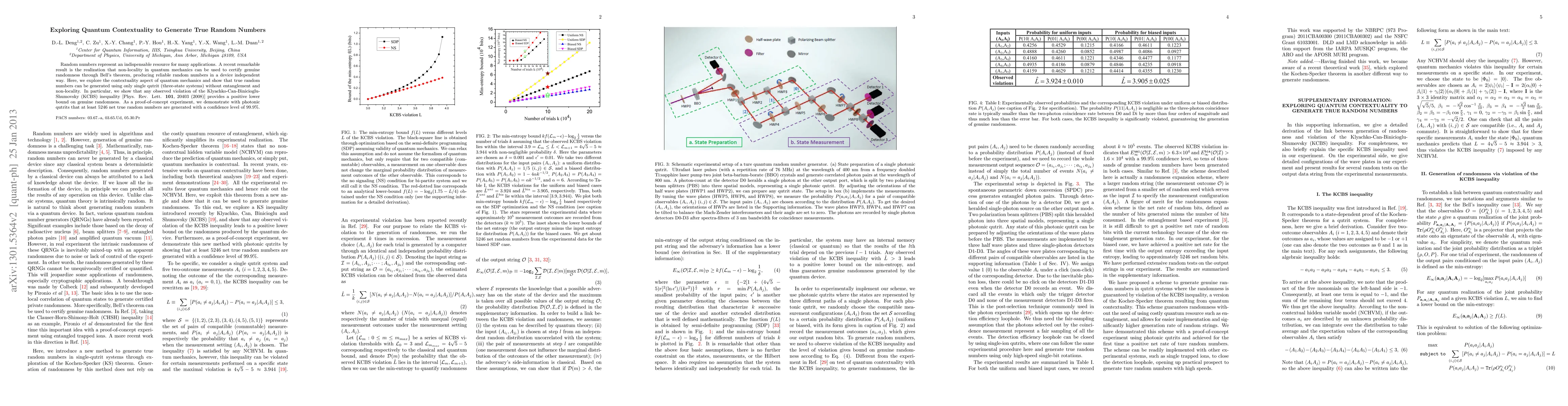 This paper demonstrates that true random numbers can be generated using quantum contextuality in single qutrit systems without relying on entanglement or non-locality. It shows that violations of the KCBS inequality indicate a lower bound on genuine randomness, and a proof-of-concept experiment with photonic qutrits produced at least 5246 net true random numbers with 99.9% confidence.