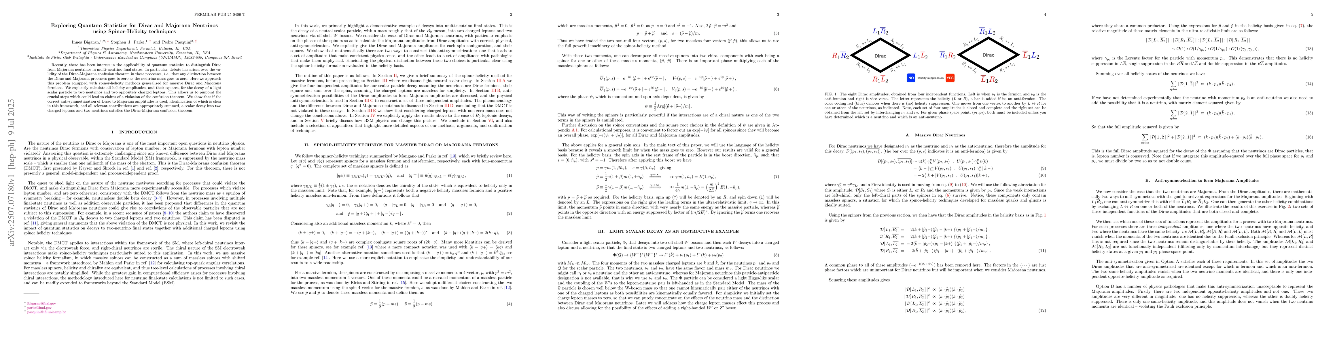 Recently, there has been interest in the applicability of quantum statistics to distinguish Dirac from Majorana neutrinos in multi-neutrino final states. In particular, debate has arisen over the validity of the Dirac-Majorana confusion theorem in these processes, i.e. that any distinction between the Dirac and Majorana processes goes to zero as the neutrino mass goes to zero. Here we approach this problem equipped with spinor-helicity methods generalized for massive Dirac and Majorana fermions. We explicitly calculate all helicity amplitudes for the decay of a light scalar particle to two neutrinos and two oppositely charged leptons. This allows us to pinpoint the crucial steps which could lead to claims of a violation of the confusion theorem. We show that if the correct anti-symmetrization of Dirac to Majorana amplitudes is used, identification of which is clear in this framework, and all relevant contributions are appropriately summed, a scalar decay into two charged leptons and two neutrinos satisfies the Dirac-Majorana confusion theorem.