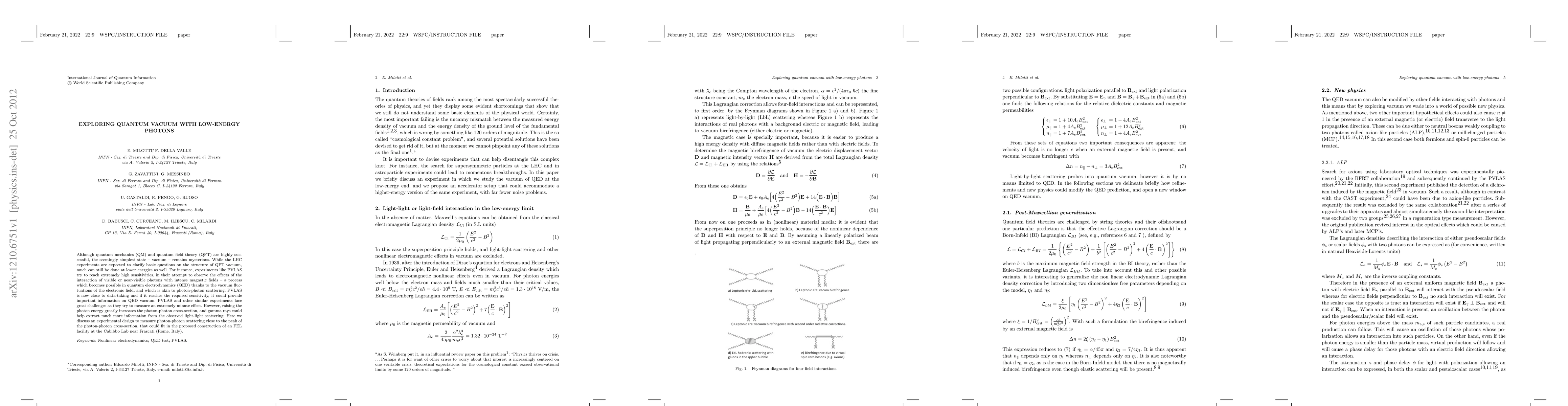Although quantum mechanics (QM) and quantum field theory (QFT) are highly successful, the seemingly simplest state -- vacuum -- remains mysterious. While the LHC experiments are expected to clarify basic questions on the structure of QFT vacuum, much can still be done at lower energies as well. For instance, experiments like PVLAS try to reach extremely high sensitivities, in their attempt to observe the effects of the interaction of visible or near-visible photons with intense magnetic fields -- a process which becomes possible in quantum electrodynamics (QED) thanks to the vacuum fluctuations of the electronic field, and which is akin to photon-photon scattering. PVLAS is now close to data-taking and if it reaches the required sensitivity, it could provide important information on QED vacuum. PVLAS and other similar experiments face great challenges as they try to measure an extremely minute effect. However, raising the photon energy greatly increases the photon-photon cross-section, and gamma rays could help extract much more information from the observed light-light scattering. Here we discuss an experimental design to measure photon-photon scattering close to the peak of the photon-photon cross-section, that could fit in the proposed construction of an FEL facility at the Cabibbo Lab near Frascati (Rome, Italy).