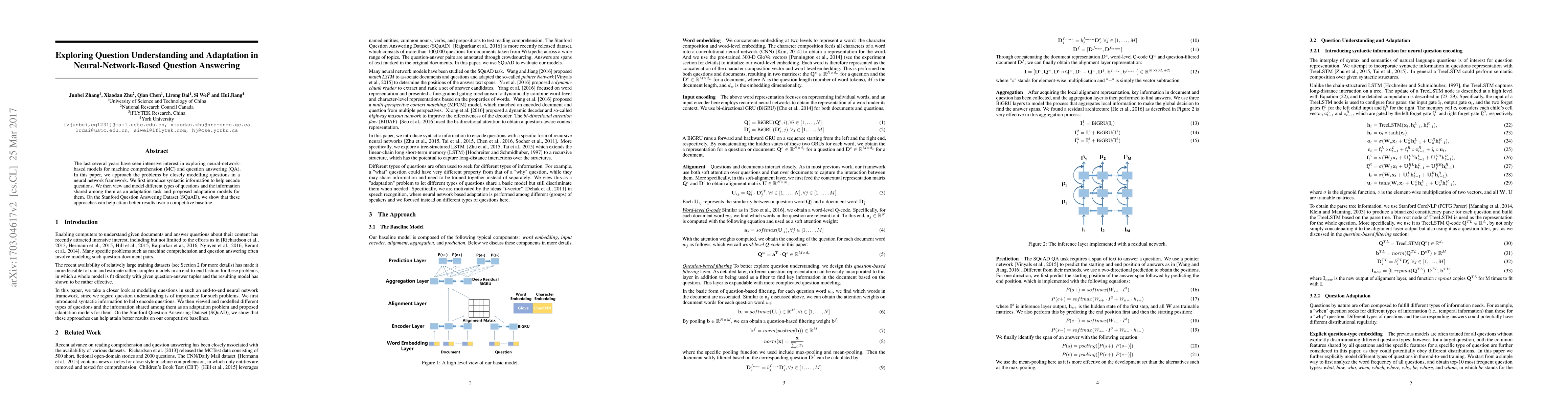 This paper investigates neural-network-based models for machine comprehension and question answering, incorporating syntactic information to encode questions and proposing adaptation models for different question types, achieving improved results on the SQuAD dataset compared to a competitive baseline.