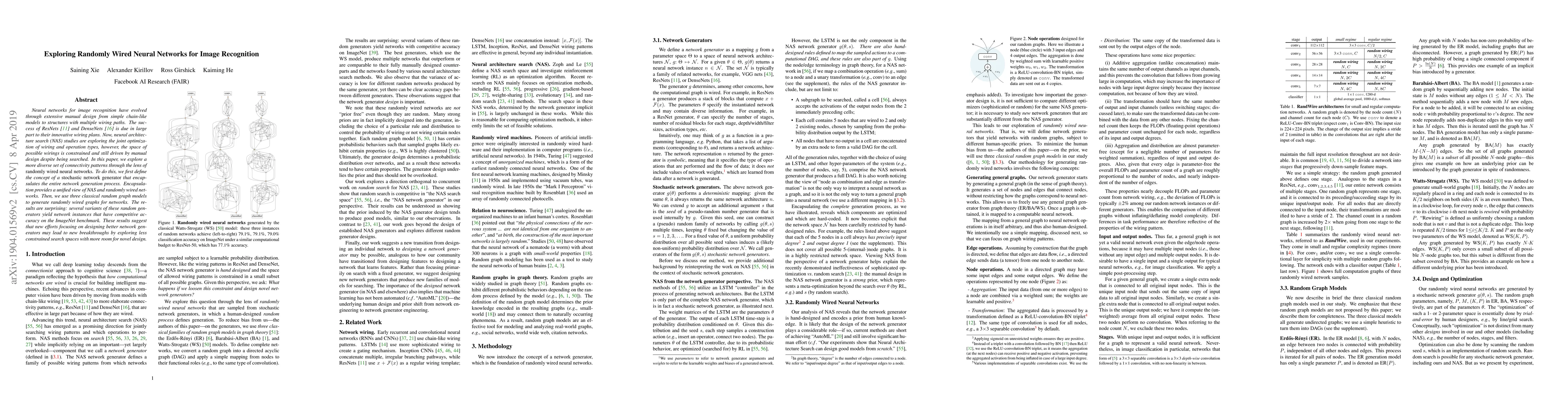 This paper investigates the potential of randomly wired neural networks for image recognition, demonstrating that networks generated using stochastic network generators and classical random graph models can achieve competitive accuracy on ImageNet. The findings suggest that less constrained search spaces may yield novel breakthroughs in neural architecture design.