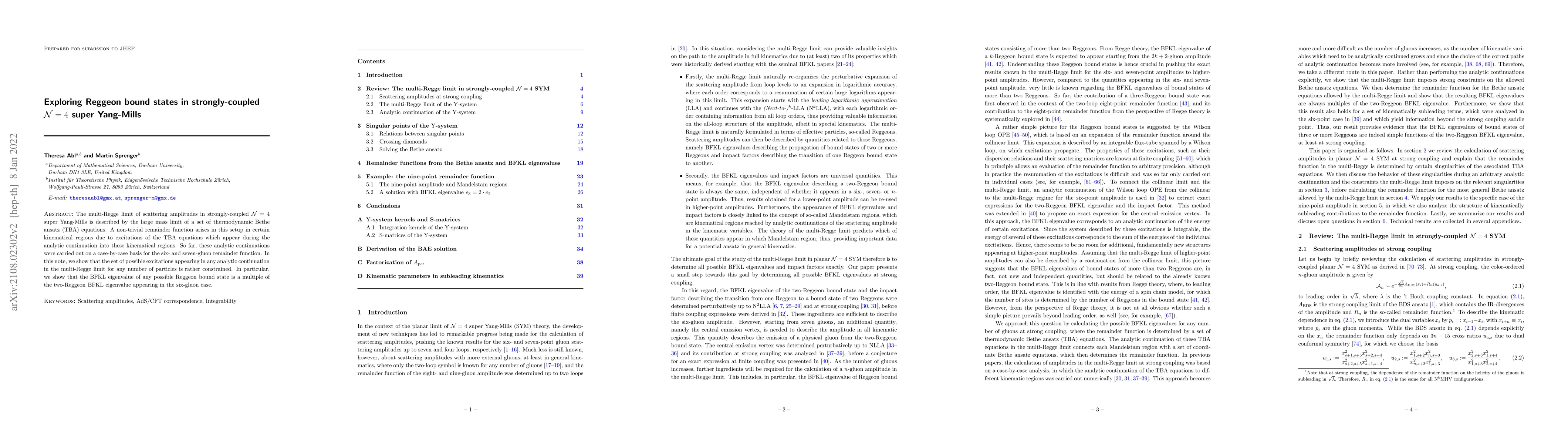 This paper investigates the multi-Regge limit of scattering amplitudes in strongly-coupled $\mathcal{N}=4$ super Yang-Mills, revealing a constrained set of possible excitations during analytic continuations. It shows that the BFKL eigenvalue of any Reggeon bound state is a multiple of the two-Reggeon BFKL eigenvalue.
