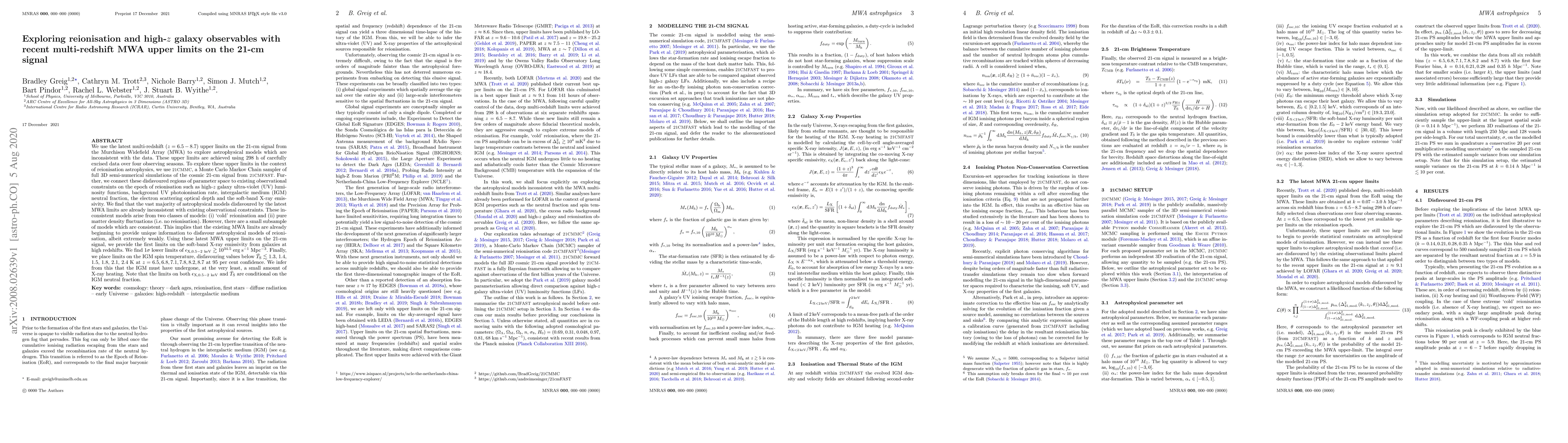 This paper uses recent MWA upper limits on the 21-cm signal to explore and disfavour astrophysical models inconsistent with reionisation, finding that most such models are already inconsistent with existing observational constraints. It also provides new limits on high-z galaxy X-ray emissivity and IGM spin temperature, suggesting minimal X-ray heating of the IGM.