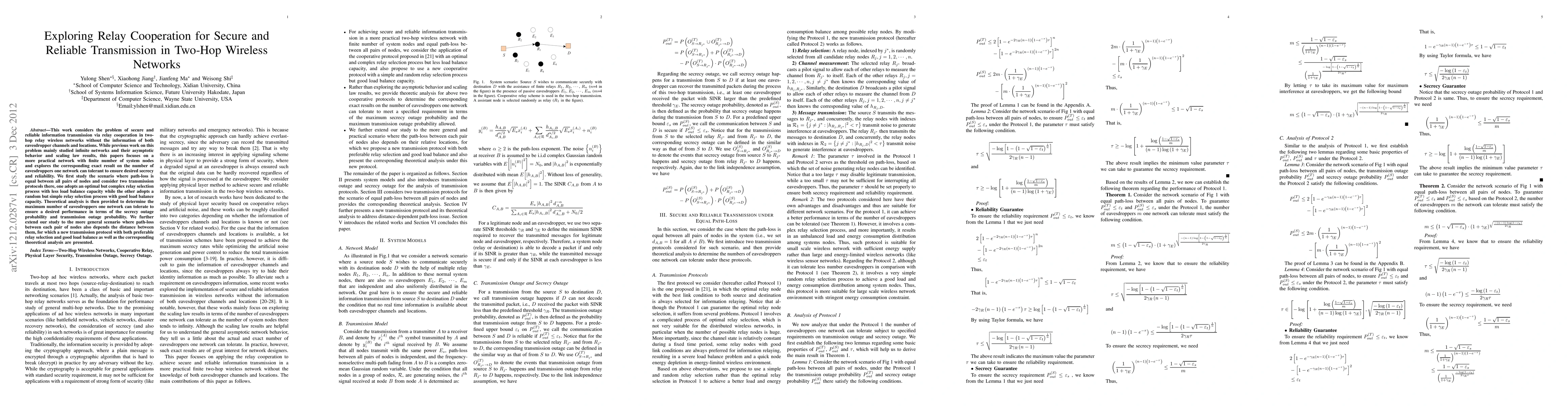 This work considers the problem of secure and reliable information transmission via relay cooperation in two-hop relay wireless networks without the information of both eavesdropper channels and locations. While previous work on this problem mainly studied infinite networks and their asymptotic behavior and scaling law results, this papers focuses on a more practical network with finite number of system nodes and explores the corresponding exact result on the number of eavesdroppers one network can tolerant to ensure desired secrecy and reliability. We first study the scenario where path-loss is equal between all pairs of nodes and consider two transmission protocols there, one adopts an optimal but complex relay selection process with less load balance capacity while the other adopts a random but simple relay selection process with good load balance capacity. Theoretical analysis is then provided to determine the maximum number of eavesdroppers one network can tolerate to ensure a desired performance in terms of the secrecy outage probability and transmission outage probability. We further extend our study to the more general scenario where path-loss between each pair of nodes also depends the distance between them, for which a new transmission protocol with both preferable relay selection and good load balance as well as the corresponding theoretical analysis are presented.