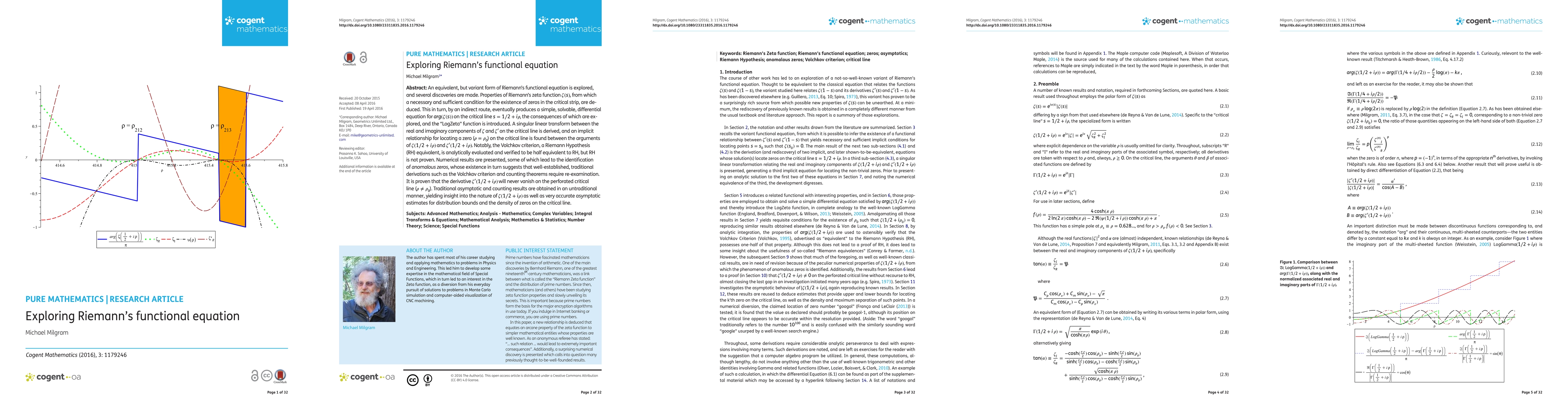 An equivalent, but variant form of the Riemann functional equation is explored, and several discoveries are made. Properties of the Riemann zeta function $\zeta(s)$ from which a necessary and sufficient condition for the existence of zeros in the critical strip are deduced. This in turn, by an indirect route, eventually produces a simple, solvable, differential equation for $arg(\zeta(s))$ on the critical line $s=1/2+i\rho$, the consequences of which are explored, and the "LogZeta" function is introduced. A singular linear transform between the real and imaginary components of $\zeta$ and $\zeta^\prime$ on the critical line is derived, and an implicit relationship for locating a zero ($\rho=\rho_0$) on the critical line is found between the arguments of $\zeta(1/2+i\rho)$ and $\zeta^{\prime}(1/2+i\rho)$. Notably, the Volchkov criterion, a Riemann Hypothesis (RH) equivalent is analytically evaluated and verified to be half equivalent to RH, but RH is not proven. Numerical results are presented, some of which lead to the identification of {\it anomalous zeros}, whose existence in turn suggests that well-established, traditional derivations such as the Volchkov criterion and counting theorems require re-examination. It is proven that the derivative $\zeta^{\prime}(1/2+i\rho)$ will never vanish on the perforated critical line ($\rho\neq\rho_0$). Traditional asymptotic and counting results are obtained in an untraditional manner, yielding insight into the nature of $\zeta(1/2+i\rho)$ as well as very accurate asymptotic estimates for distribution bounds and the density of zeros on the critical line.