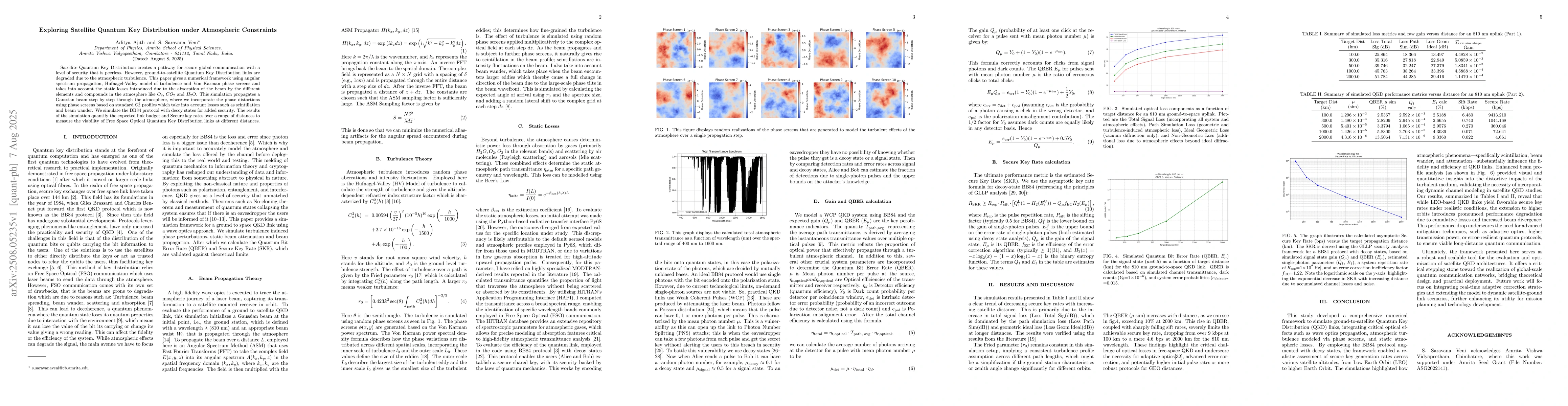 Satellite Quantum Key Distribution creates a pathway for secure global communication with a level of security that is peerless. However, ground-to-satellite Quantum Key Distribution links are degraded due to the atmospheric turbulence. This paper gives a numerical framework using angular spectrum propagation, Hufnagel-Valley model of turbulence and Von Karman phase screens and takes into account the static losses introduced due to the absorption of the beam by the different elements and compounds in the atmosphere like O2, CO2 and H2O. This simulation propagates a Gaussian beam step by step through the atmosphere, where we incorporate the phase distortions using phase screens based on standard Cn2 profiles which take into account losses such as scintillation and beam wander. We simulate the BB84 protocol with decoy states for added security. The results of the simulation quantify the expected link budget and Secure key rates over a range of distances to measure the viability of Free Space Optical Quantum Key Distribution links at different distances.