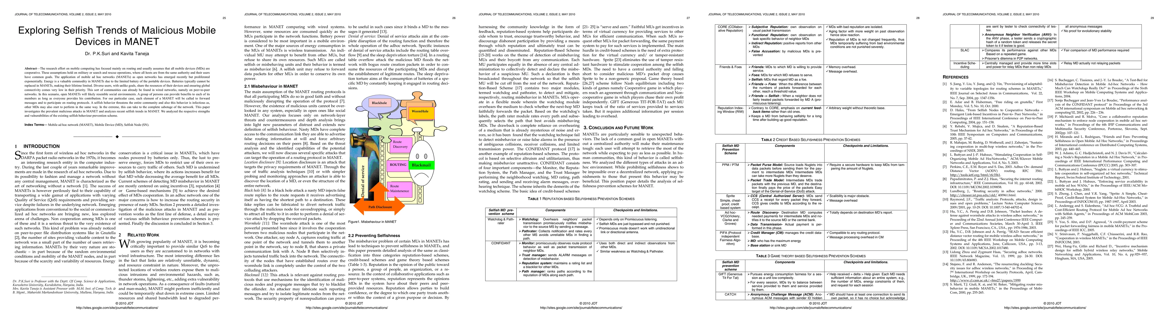 The research effort on mobile computing has focused mainly on routing and usually assumes that all mobile devices (MDs) are cooperative. These assumptions hold on military or search and rescue operations, where all hosts are from the same authority and their users have common goals. The application of mobile ad hoc networks (MANETs) as open networks has emerged recently but proliferated exponentially. Energy is a valuable commodity in MANETs due to the limited battery of the portable devices. Batteries typically cannot be replaced in MANETs, making their lifetime limited. Diverse users, with unlike goals, share the resources of their devices and ensuring global connectivity comes very low in their priority. This sort of communities can already be found in wired networks, namely on peer-to-peer networks. In this scenario, open MANETs will likely resemble social environments. A group of persons can provide benefits to each of its members as long as everyone provides his contribution. For our particular case, each element of a MANET will be called to forward messages and to participate on routing protocols. A selfish behavior threatens the entire community and also this behavior is infectious as, other MDs may also start to perform in the same way. In the extreme, this can take to the complete sabotage of the network. This paper investigates the prevalent malicious attacks in MANET and analyzes recent selfish trends in MANET. We analyzed the respective strengths and vulnerabilities of the existing selfish behaviour prevention scheme.