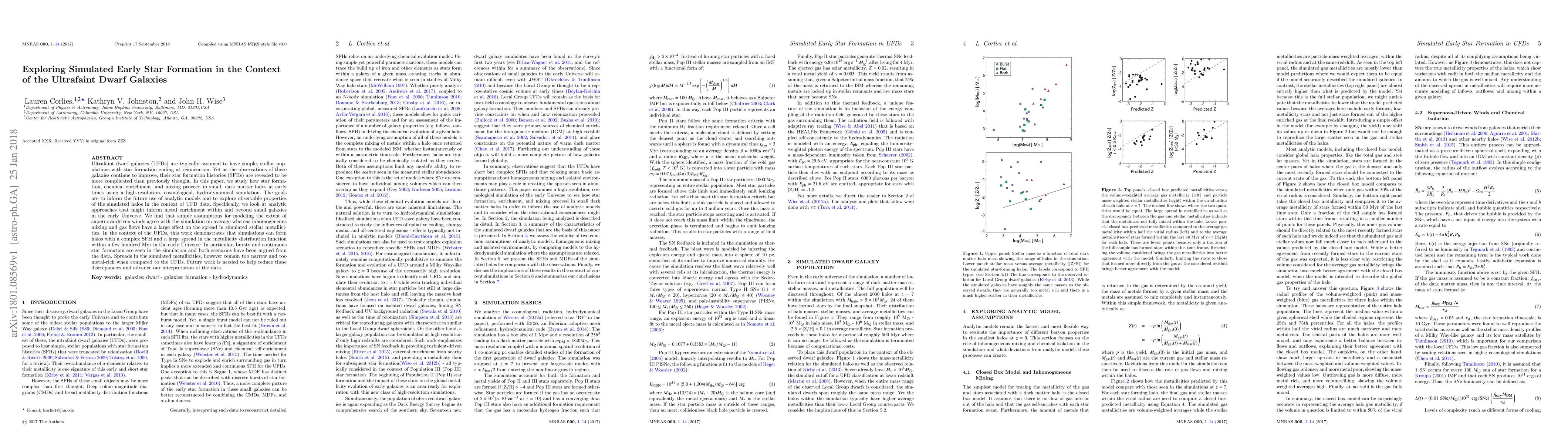 Ultrafaint dwarf galaxies (UFDs) are typically assumed to have simple, stellar populations with star formation ending at reionization. Yet as the observations of these galaxies continue to improve, their star formation histories (SFHs) are revealed to be more complicated than previously thought. In this paper, we study how star formation, chemical enrichment, and mixing proceed in small, dark matter halos at early times using a high-resolution, cosmological, hydrodynamical simulation. The goals are to inform the future use of analytic models and to explore observable properties of the simulated halos in the context of UFD data. Specifically, we look at analytic approaches that might inform metal enrichment within and beyond small galaxies in the early Universe. We find that simple assumptions for modeling the extent of supernova-driven winds agree with the simulation on average whereas inhomogeneous mixing and gas flows have a large effect on the spread in simulated stellar metallicities. In the context of the UFDs, this work demonstrates that simulations can form halos with a complex SFH and a large spread in the metallicity distribution function within a few hundred Myr in the early Universe. In particular, bursty and continuous star formation are seen in the simulation and both scenarios have been argued from the data. Spreads in the simulated metallicities, however remain too narrow and too metal-rich when compared to the UFDs. Future work is needed to help reduce these discrepancies and advance our interpretation of the data.