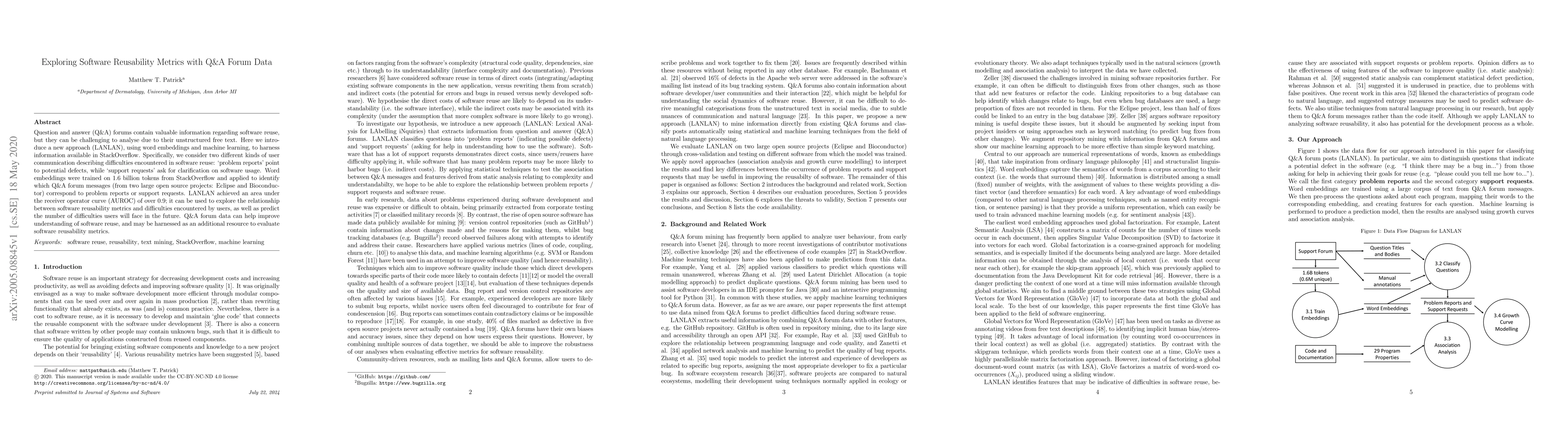 This paper introduces LANLAN, a novel approach using word embeddings and machine learning to analyze unstructured Q&A forum data from StackOverflow for software reusability metrics. LANLAN distinguishes between problem reports and support requests, achieving high AUROC scores, and can predict future user difficulties, enhancing the understanding of software reuse.