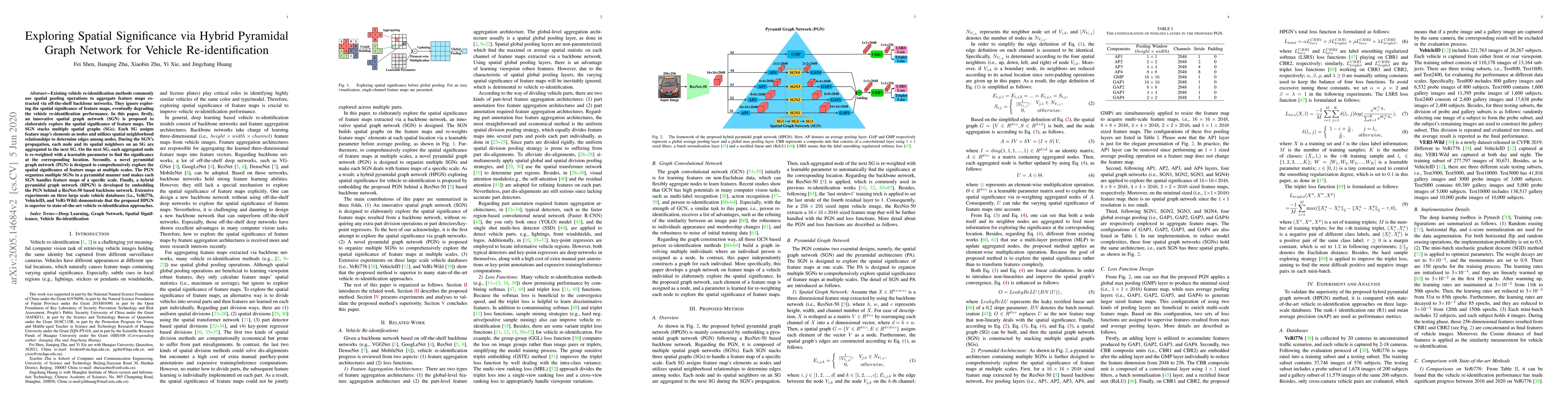 This paper proposes a hybrid pyramidal graph network (HPGN) for vehicle re-identification, which utilizes spatial graph networks (SGN) to explore feature map significance and a pyramidal graph network (PGN) to handle multi-scale spatial information, outperforming existing methods on several large-scale datasets.