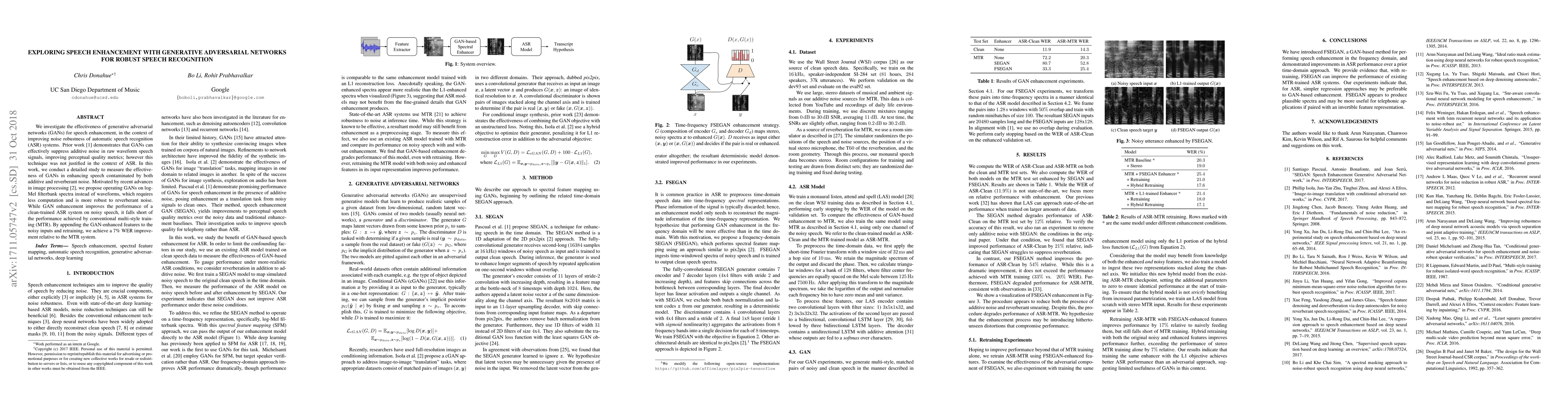 This paper explores the use of generative adversarial networks (GANs) for speech enhancement to improve the robustness of automatic speech recognition (ASR) systems. The study finds that GANs operating on log-Mel filterbank spectra outperform waveform-based GANs in suppressing noise, achieving a 7% Word Error Rate (WER) improvement when combined with retraining, compared to conventional multi-style training.