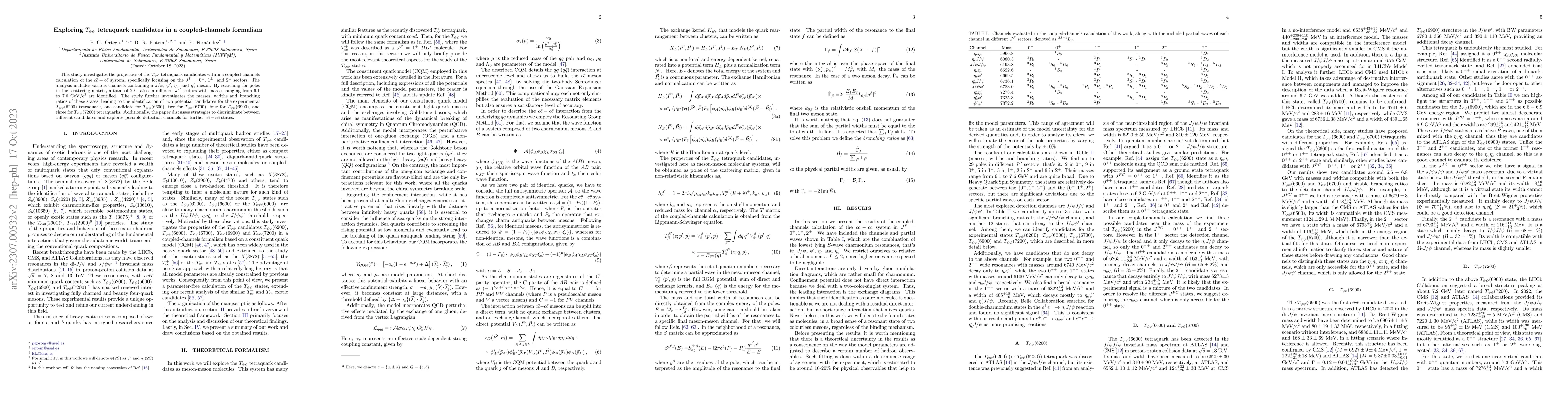 This study investigates the properties of the $T_{\psi\psi}$ tetraquark candidates within a coupled-channels calculation of the $c\bar c- c\bar c$ system, specifically focusing on the $J^P=0^\pm$, $1^\pm$, and $2^\pm$ sectors. The analysis includes various channels containing a $J/\psi$, $\psi^\prime$, $\eta_c$, and $\eta_c^\prime$ meson. By searching for poles in the scattering matrix, a total of 29 states in different $J^P$ sectors with masses ranging from 6.1 to 7.6 GeV/c$^2$ are identified. The study further investigates the masses, widths and branching ratios of these states, leading to the identification of two potential candidates for the experimental $T_{\psi\psi}(6200)$ tetraquark, one candidate for $T_{\psi\psi}(6600)$, two for $T_{\psi\psi}(6700)$, four for $T_{\psi\psi}(6900)$, and three for $T_{\psi\psi}(7200)$ tetraquarks. Additionally, the paper discusses strategies to discriminate between different candidates and explores possible detection channels for further $c\bar c- c\bar c$ states.