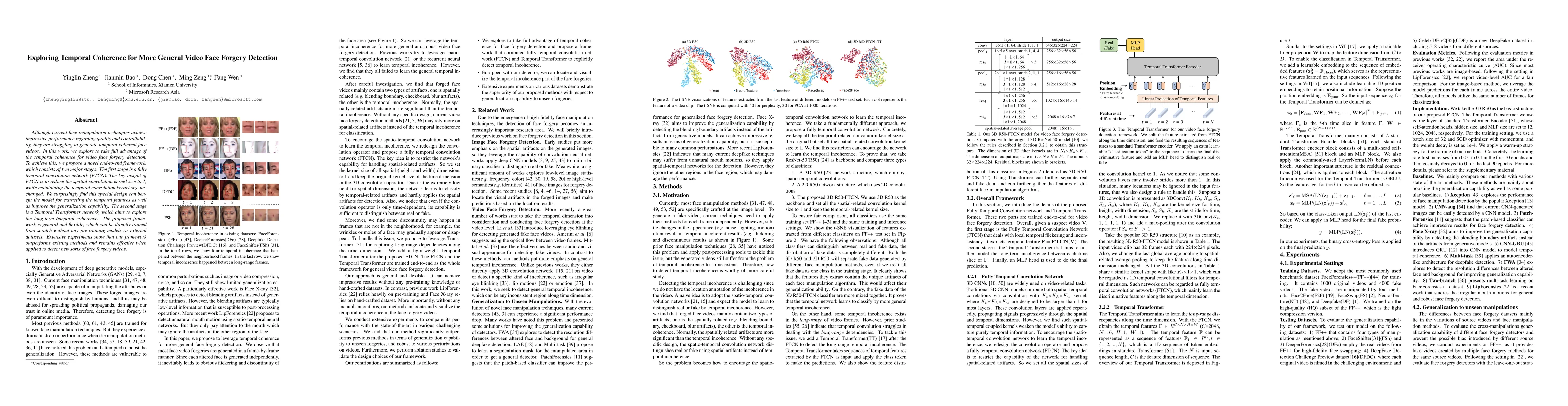 This paper proposes a novel end-to-end framework for detecting temporally incoherent face forgeries in videos, utilizing a fully temporal convolution network and a Temporal Transformer network to extract temporal features and explore long-term coherence, outperforming existing methods.