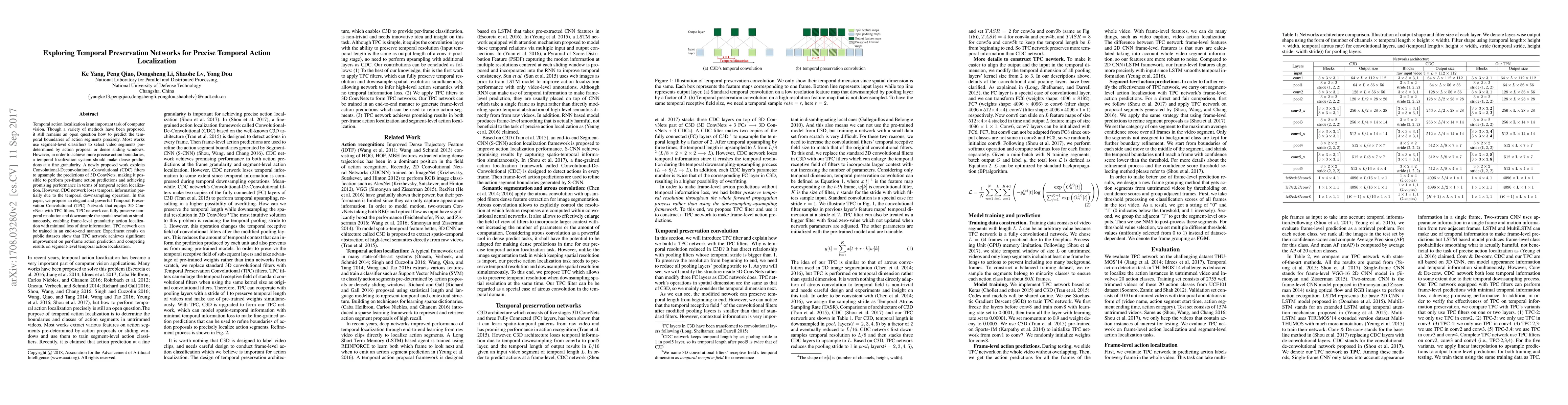 This paper proposes a Temporal Preservation Convolutional (TPC) Network to enhance temporal action localization by preserving temporal resolution while downsampling spatial resolution, achieving precise per-frame action predictions. Experimental results demonstrate significant improvements over existing methods.