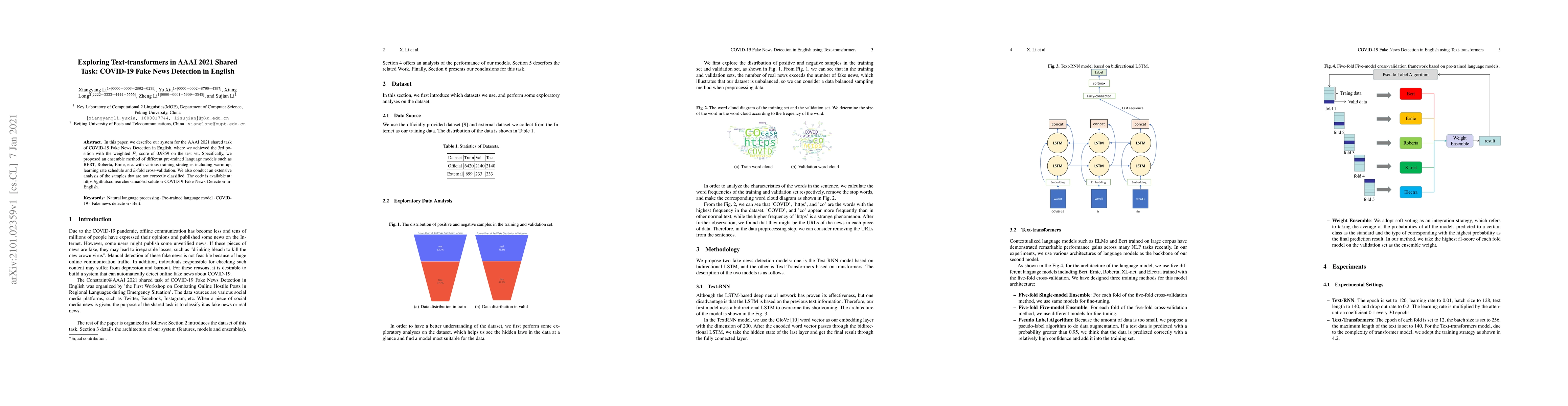 This paper details an ensemble method combining various pre-trained language models like BERT, Roberta, and Ernie for the AAAI 2021 COVID-19 Fake News Detection task, achieving the 3rd position with a weighted F1 score of 0.9859. The authors also analyze misclassified samples and provide their code for reproducibility.