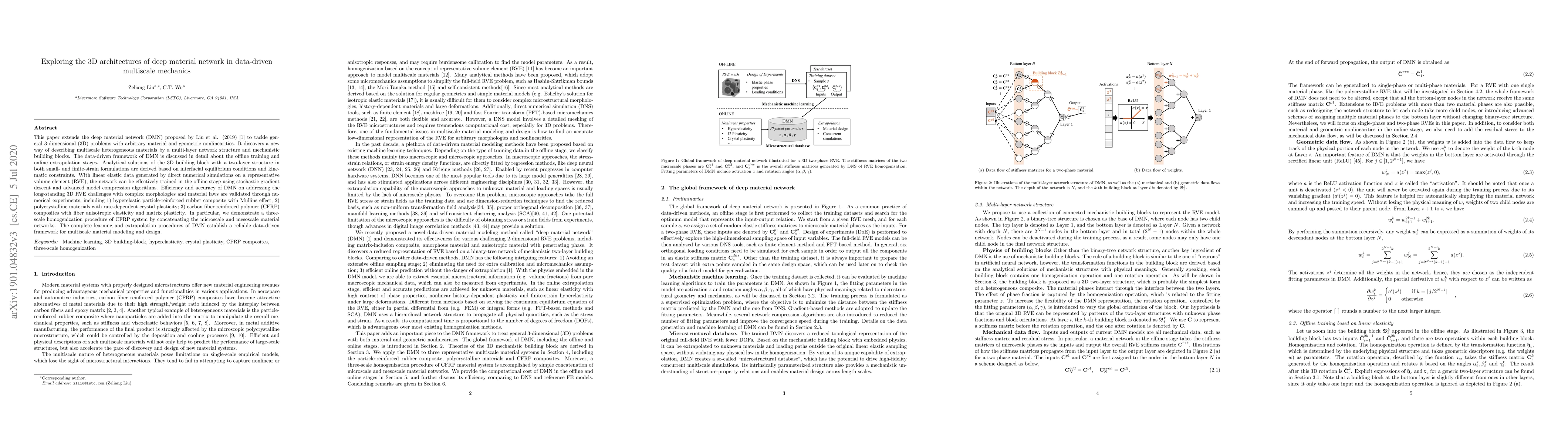 This paper extends the deep material network (DMN) to address 3D problems with material and geometric nonlinearities, introducing a multi-layer network structure for multiscale heterogeneous materials. The DMN framework is validated through numerical experiments on complex materials, demonstrating its efficiency and accuracy in multiscale homogenization.