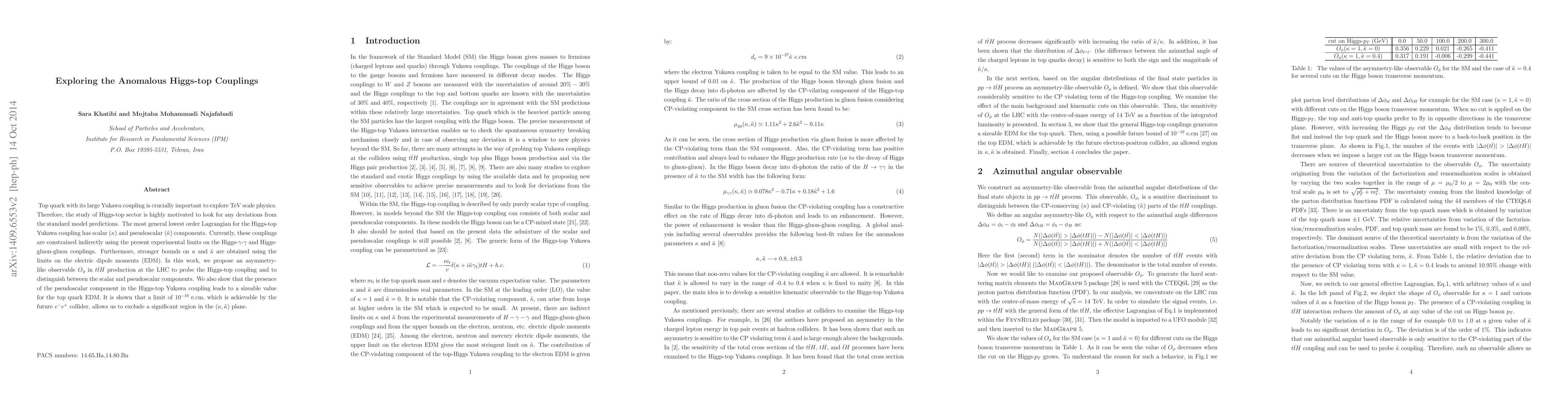 This paper investigates the Higgs-top quark coupling, proposing a new asymmetry-like observable $O_{\phi}$ at the LHC to distinguish between scalar and pseudoscalar components. It also demonstrates that a future $e^{-}e^{+}$ collider with a top quark EDM limit of $10^{-19}$ e.cm can exclude significant regions in the $(\kappa,\tilde{\kappa})$ plane.