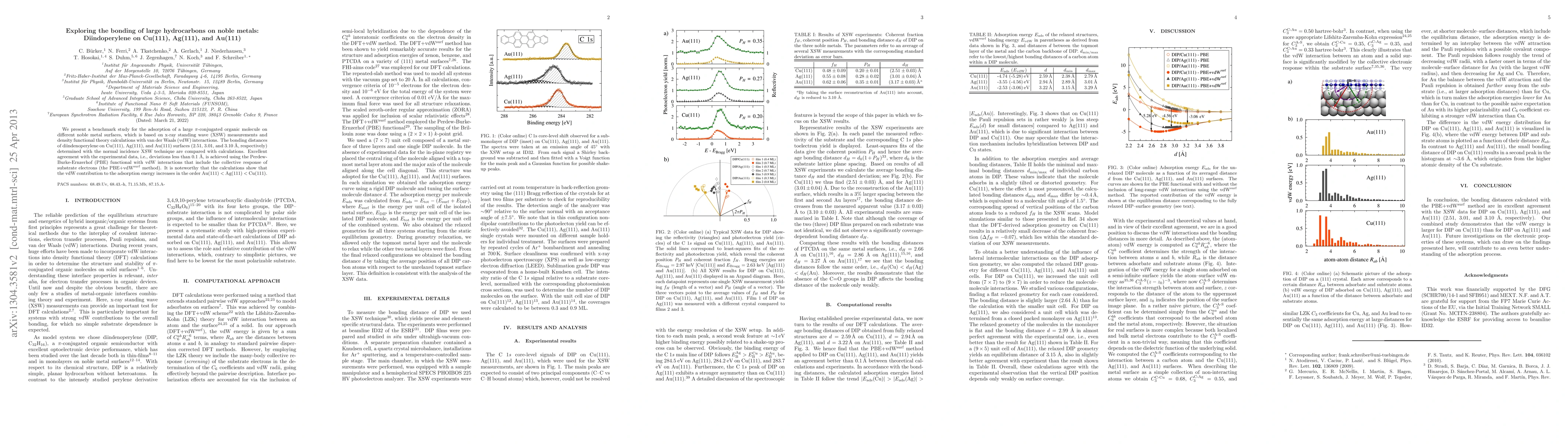This study benchmarks the adsorption of diindenoperylene on Cu(111), Ag(111), and Au(111) using X-ray standing wave measurements and density functional theory, revealing bonding distances of 2.51 Å, 3.01 Å, and 3.10 Å, respectively. The PBE+vdW^{surf} method shows excellent agreement with experimental data, highlighting that van der Waals interactions increase adsorption energy in the order Au(111) < Ag(111) < Cu(111).