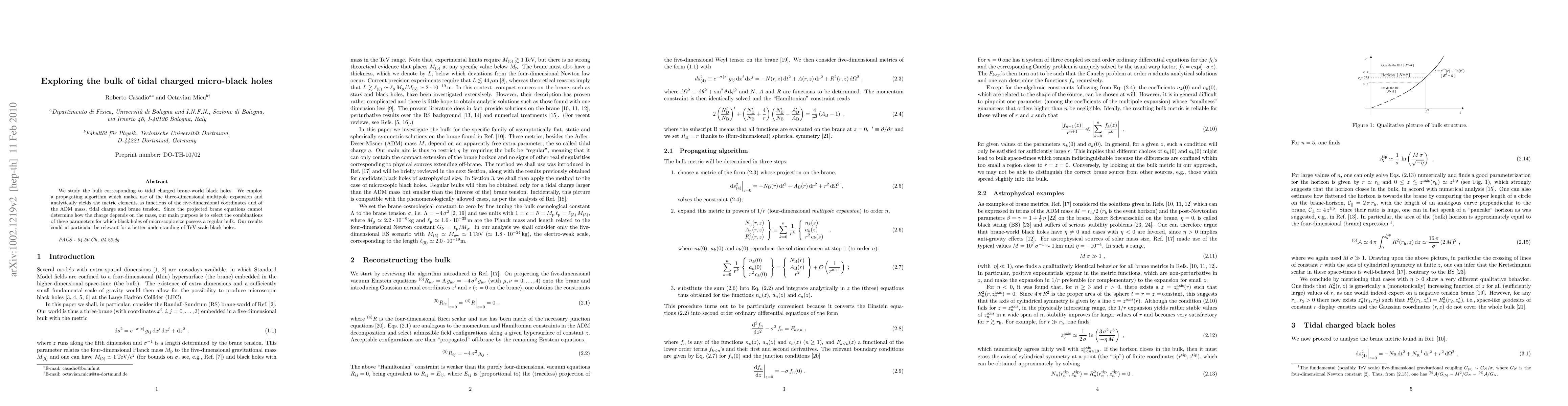 We study the bulk corresponding to tidal charged brane-world black holes. We employ a propagating algorithm which makes use of the three-dimensional multipole expansion and analytically yields the metric elements as functions of the five-dimensional coordinates and of the ADM mass, tidal charge and brane tension. Since the projected brane equations cannot determine how the charge depends on the mass, our main purpose is to select the combinations of these parameters for which black holes of microscopic size possess a regular bulk. Our results could in particular be relevant for a better understanding of TeV-scale black holes.