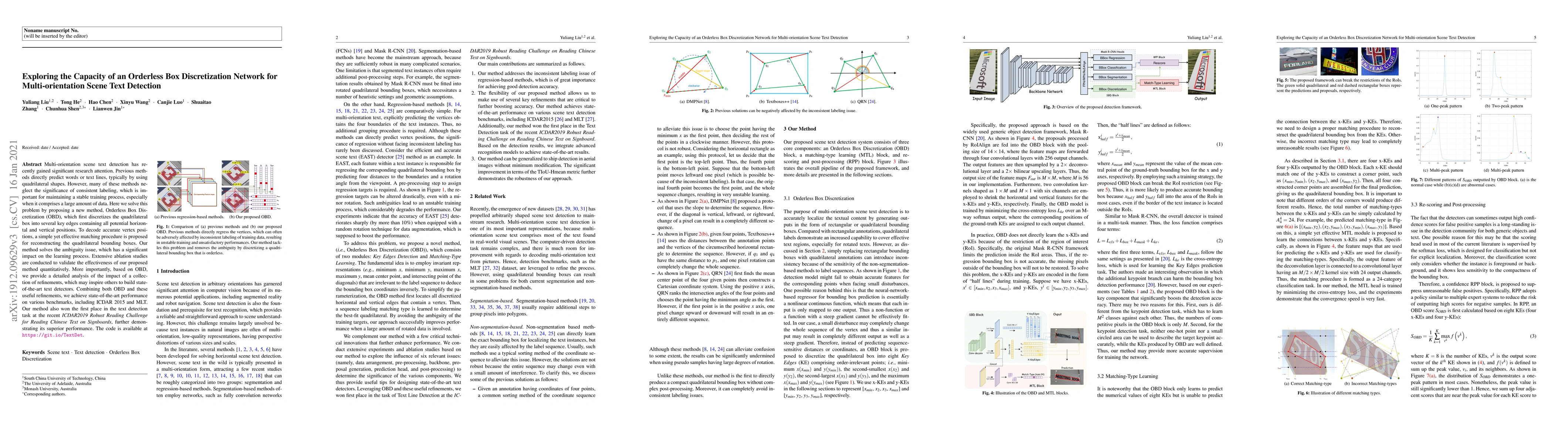 Multi-orientation scene text detection has recently gained significant research attention. Previous methods directly predict words or text lines, typically by using quadrilateral shapes. However, many of these methods neglect the significance of consistent labeling, which is important for maintaining a stable training process, especially when it comprises a large amount of data. Here we solve this problem by proposing a new method, Orderless Box Discretization (OBD), which first discretizes the quadrilateral box into several key edges containing all potential horizontal and vertical positions. To decode accurate vertex positions, a simple yet effective matching procedure is proposed for reconstructing the quadrilateral bounding boxes. Our method solves the ambiguity issue, which has a significant impact on the learning process. Extensive ablation studies are conducted to validate the effectiveness of our proposed method quantitatively. More importantly, based on OBD, we provide a detailed analysis of the impact of a collection of refinements, which may inspire others to build state-of-the-art text detectors. Combining both OBD and these useful refinements, we achieve state-of-the-art performance on various benchmarks, including ICDAR 2015 and MLT. Our method also won the first place in the text detection task at the recent ICDAR2019 Robust Reading Challenge for Reading Chinese Text on Signboards, further demonstrating its superior performance. The code is available at https://git.io/TextDet.