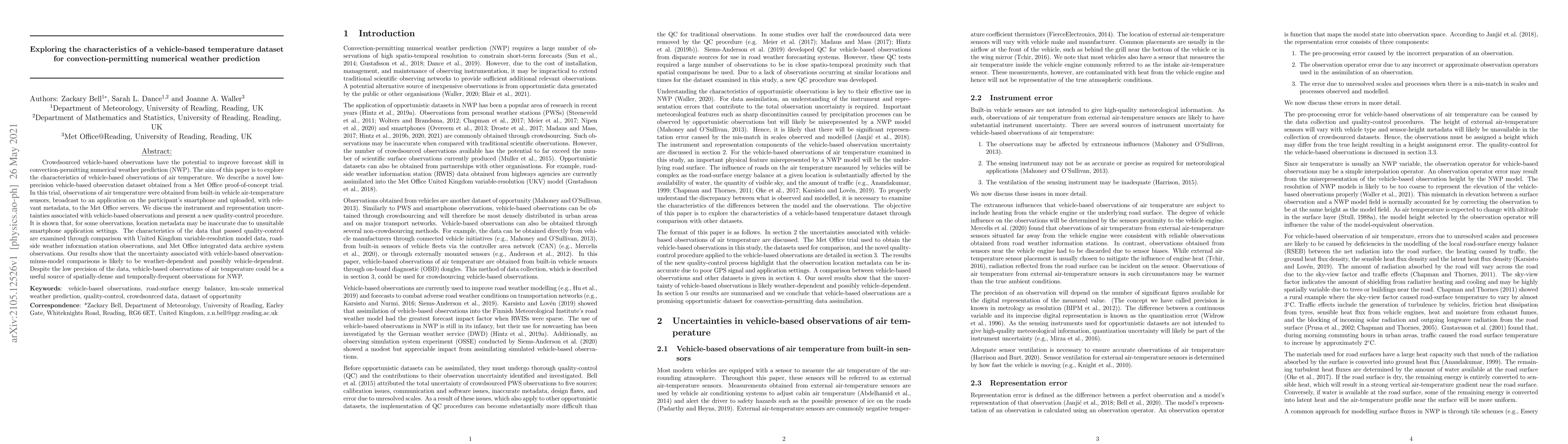 This paper presents a study on vehicle-based air temperature observations for improving weather prediction. Despite low precision, these crowdsourced data show potential due to their spatial and temporal density. The research highlights the need for quality control, considering uncertainties from instruments and location metadata, and suggests weather-dependent and possibly vehicle-dependent uncertainties in observation-model comparisons.