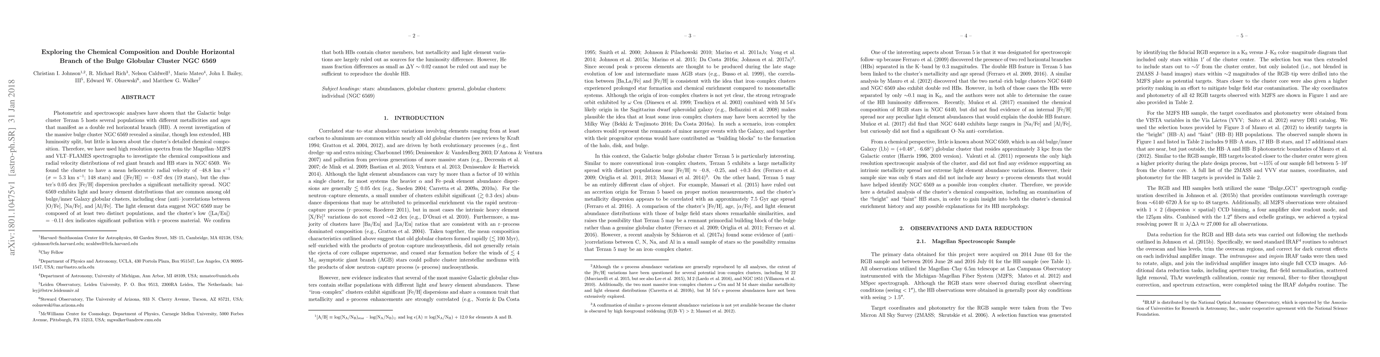 Photometric and spectroscopic analyses have shown that the Galactic bulge cluster Terzan 5 hosts several populations with different metallicities and ages that manifest as a double red horizontal branch (HB). A recent investigation of the massive bulge cluster NGC 6569 revealed a similar, though less extended, HB luminosity split, but little is known about the cluster's detailed chemical composition. Therefore, we have used high-resolution spectra from the Magellan-M2FS and VLT-FLAMES spectrographs to investigate the chemical compositions and radial velocity distributions of red giant branch and HB stars in NGC 6569. We found the cluster to have a mean heliocentric radial velocity of -48.8 km/s (sigma = 5.3 km/s; 148 stars) and a mean [Fe/H] =-0.87 dex (19 stars), but the cluster's 0.05 dex [Fe/H] dispersion precludes a significant metallicity spread. NGC 6569 exhibits light- and heavy-element distributions that are common among old bulge/inner Galaxy globular clusters, including clear (anti)correlations between [O/Fe], [Na/Fe], and [Al/Fe]. The light-element data suggest that NGC 6569 may be composed of at least two distinct populations, and the cluster's low mean [La/Eu] = -0.11 dex indicates significant pollution with r-process material. We confirm that both HBs contain cluster members, but metallicity and light-element variations are largely ruled out as sources for the luminosity difference. However, He mass fraction differences as small as delta Y ~ 0.02 cannot be ruled out and may be sufficient to reproduce the double HB.