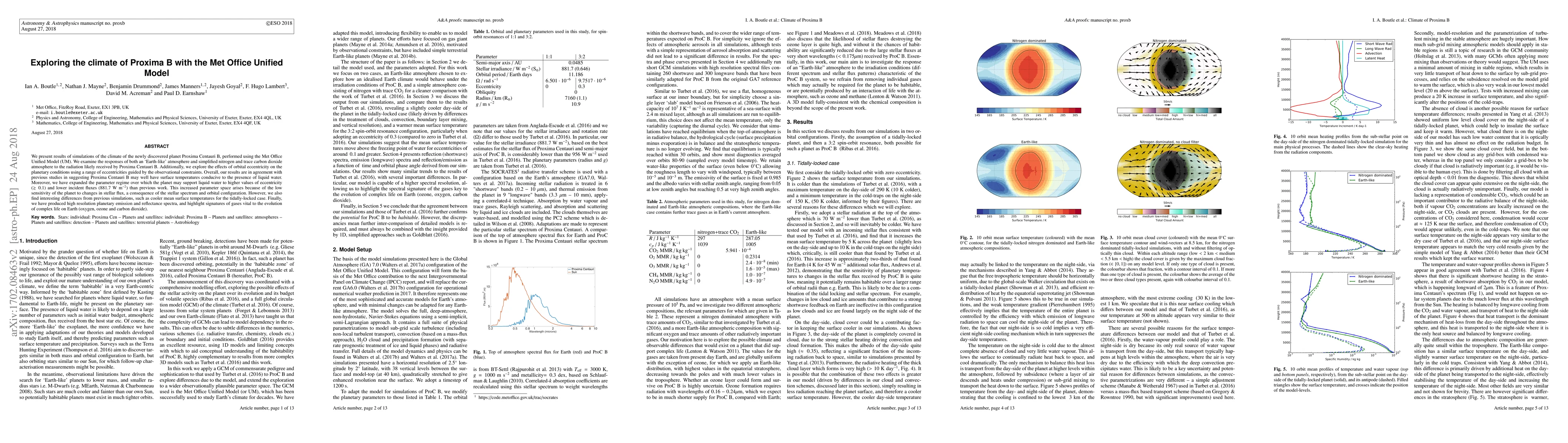 This study uses the Met Office Unified Model to simulate the climate of Proxima Centauri B, finding that it may support liquid water over a broader range of eccentricities and lower fluxes than previously thought. The research also reveals cooler mean surface temperatures for the tidally-locked scenario and identifies key atmospheric gases essential for life.
