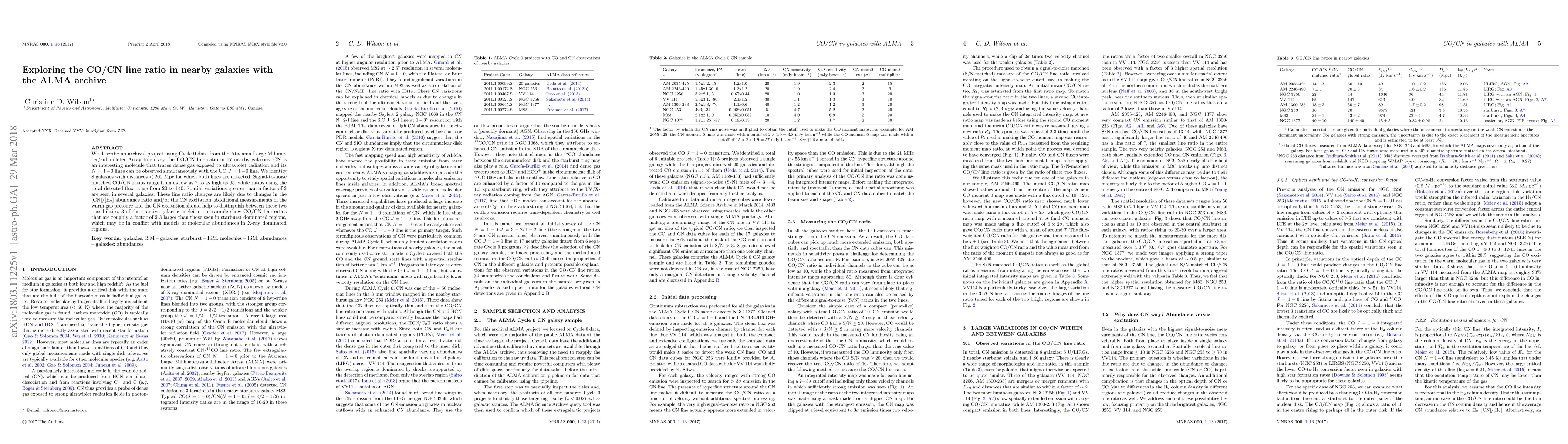 We describe an archival project using Cycle 0 data from the Atacama Large Millimeter/submilleter Array to survey the CO/CN line ratio in 17 nearby galaxies. CN is an interesting molecule that traces dense gas exposed to ultraviolet radiation and its N=1-0 lines can be observed simultaneously with the CO J=1-0 line. We identify 8 galaxies with distances < 200 Mpc for which both lines are detected. Signal-to-noise matched CO/CN ratios range from as low as 7 to as high as 65, while ratios using the total detected flux range from 20 to 140. Spatial variations greater than a factor of 3 are seen in several galaxies. These line ratio changes are likely due to changes in the [CN]/[H2] abundance ratio and/or the CN excitation. Additional measurements of the warm gas pressure and the CN excitation should help to distinguish between these two possibilities. 3 of the 4 active galactic nuclei in our sample show CO/CN line ratios that are roughly a factor of 2-3 larger than those seen in starburst-dominated regions, which may be in conflict with models of molecular abundances in X-ray dominated regions.