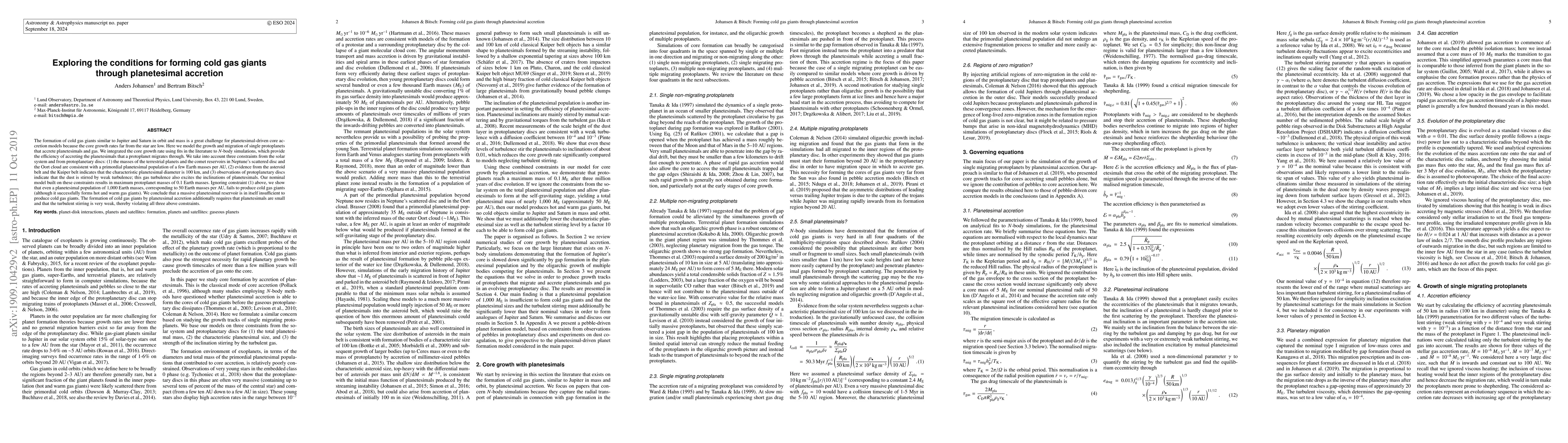 This paper models the formation of cold gas giants through planetesimal accretion, finding that despite a massive planetesimal reservoir, cold gas giants cannot form unless planetesimals are small and turbulence is weak, which contradicts observed solar system constraints.