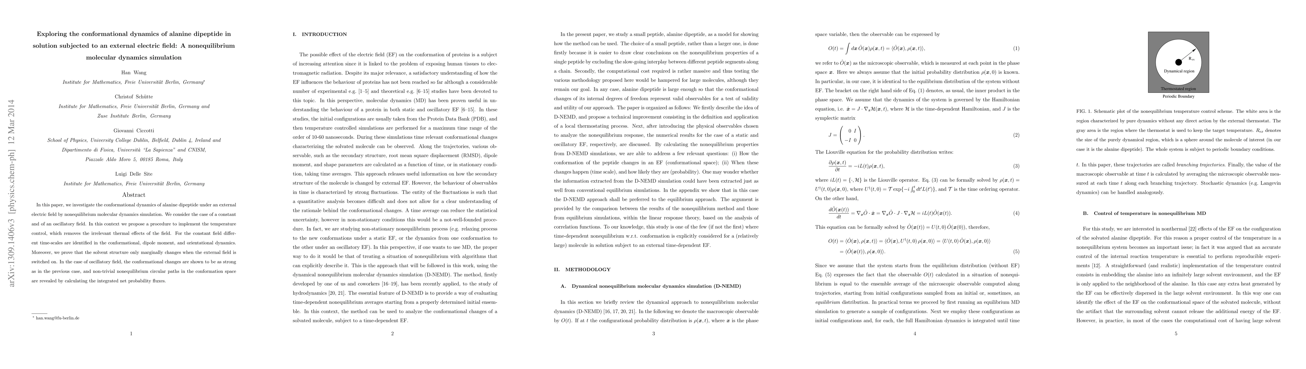 Researchers used molecular dynamics simulation to study how an external electric field affects the conformation of alanine dipeptide in solution. They found strong conformational changes even with an oscillatory field, revealing non-trivial paths in the conformation space.