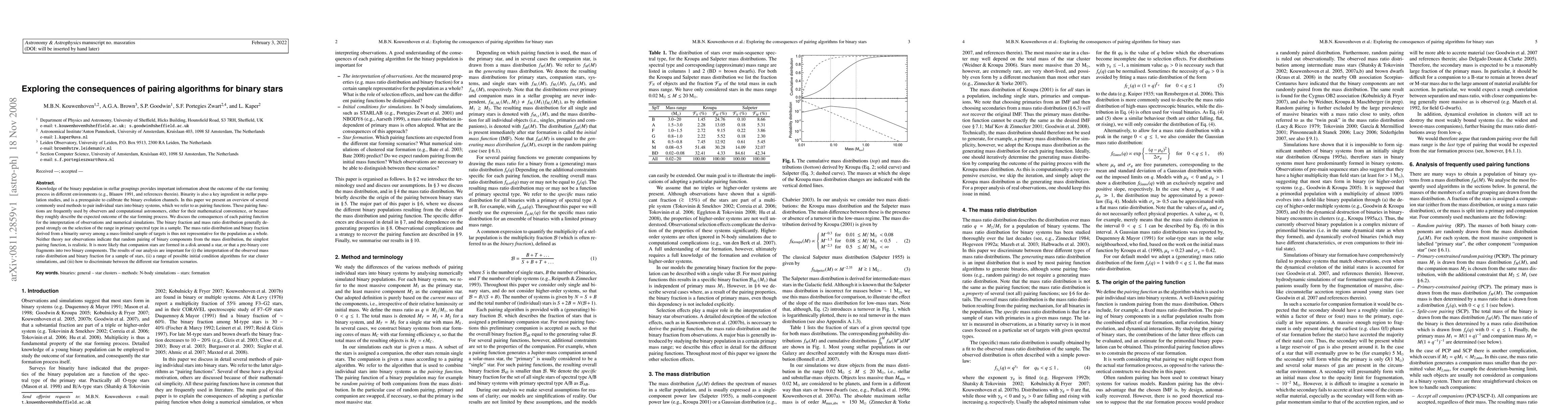 Knowledge of the binary population in stellar groupings provides important information about the outcome of the star forming process in different environments (see, e.g., Blaauw 1991, and references therein). Binarity is also a key ingredient in stellar population studies, and is a prerequisite to calibrate the binary evolution channels. In this paper we present an overview of several commonly used methods to pair individual stars into binary systems, which we refer to as pairing functions. These pairing functions are frequently used by observers and computational astronomers, either for their mathematical convenience, or because they roughly describe the expected outcome of the star forming process. We discuss the consequences of each pairing function for the interpretation of observations and numerical simulations. The binary fraction and mass ratio distribution generally depend strongly on the selection of the range in primary spectral type in a sample. The mass ratio distribution and binary fraction derived from a binarity survey among a mass-limited sample of targets is thus not representative for the population as a whole. Neither theory nor observations indicate that random pairing of binary components from the mass distribution, the simplest pairing function, is realistic. It is more likely that companion stars are formed in a disk around a star, or that a pre-binary core fragments into two binary components. The results of our analysis are important for (i) the interpretation of the observed mass ratio distribution and binary fraction for a sample of stars, (ii) a range of possible initial condition algorithms for star cluster simulations, and (iii) how to discriminate between the different star formation scenarios.