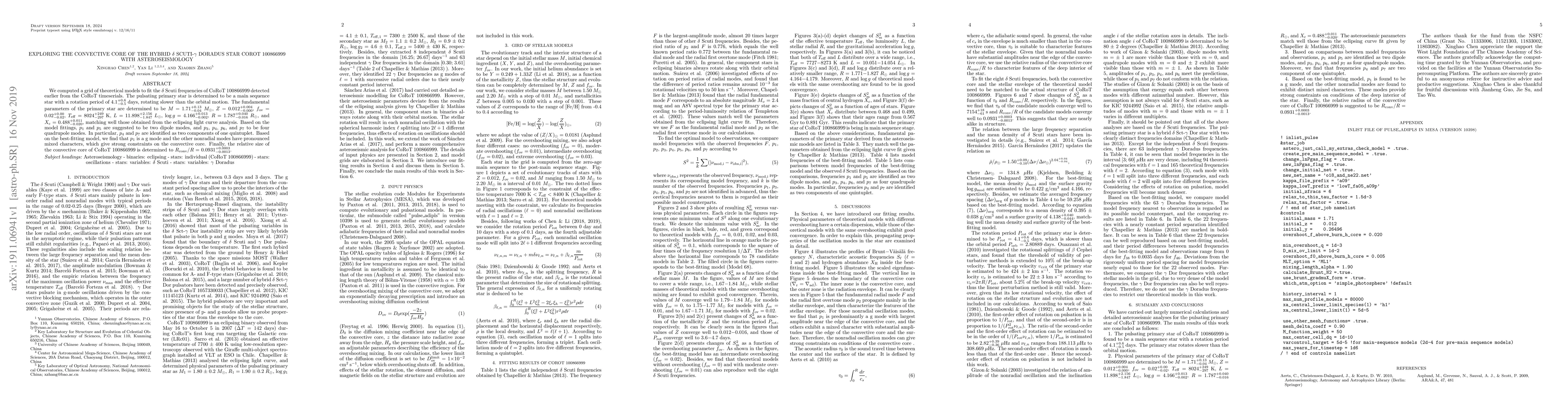 This study uses asteroseismology to analyze the hybrid $\delta$ Scuti-$\gamma$ Doradus star CoRoT 100866999, identifying its pulsation modes and determining the relative size of its convective core to be $R_{\rm conv}/R$ = $0.0931^{+0.0003}_{-0.0013}$. The star's mixed-mode pulsations provide insights into its convective core structure.