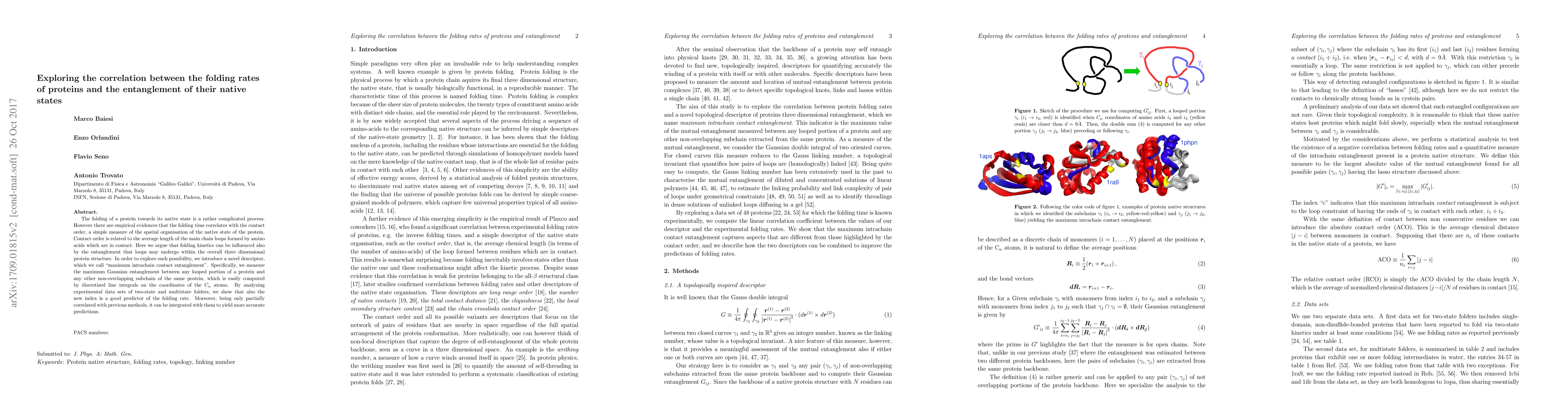 The folding of a protein towards its native state is a rather complicated process. However there are empirical evidences that the folding time correlates with the contact order, a simple measure of the spatial organisation of the native state of the protein. Contact order is related to the average length of the main chain loops formed by amino acids which are in contact. Here we argue that folding kinetics can be influenced also by the entanglement that loops may undergo within the overall three dimensional protein structure. In order to explore such possibility, we introduce a novel descriptor, which we call "maximum intrachain contact entanglement". Specifically, we measure the maximum Gaussian entanglement between any looped portion of a protein and any other non-overlapping subchain of the same protein, which is easily computed by discretized line integrals on the coordinates of the $C_{\alpha}$ atoms. By analyzing experimental data sets of two-state and multistate folders, we show that also the new index is a good predictor of the folding rate. Moreover, being only partially correlated with previous methods, it can be integrated with them to yield more accurate predictions.