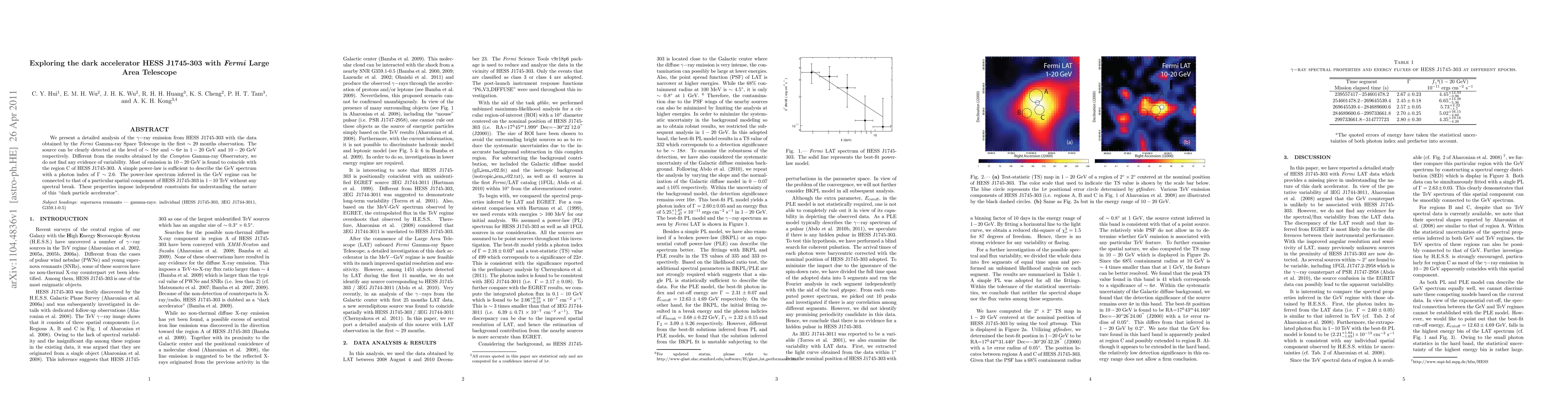 This study analyzes gamma-ray emissions from HESS J1745-303 using Fermi Telescope data, finding no variability and a power-law spectrum connecting GeV and TeV emissions, providing insights into the source's nature as a "dark particle accelerator."